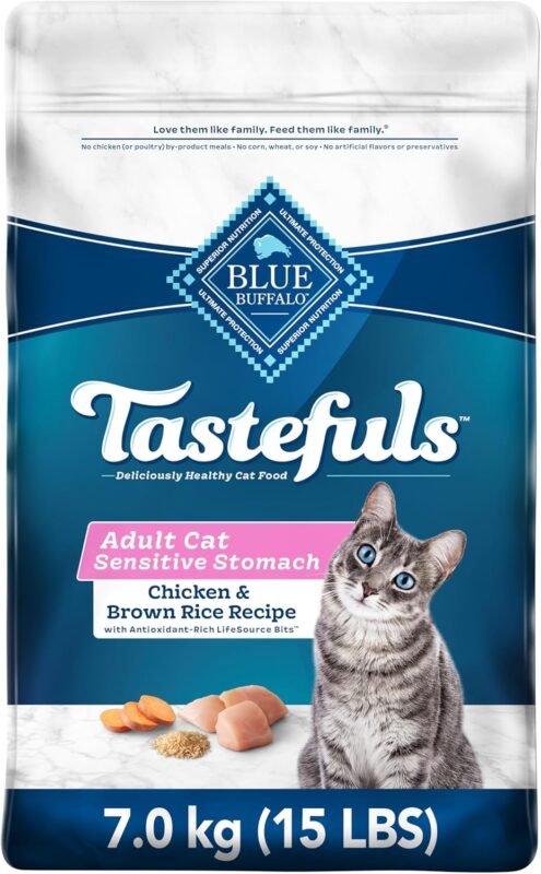 Blue Buffalo Sensitive Stomach Natural Adult Dry Cat Food, Chicken and Brown Rice 6.8kg Bag