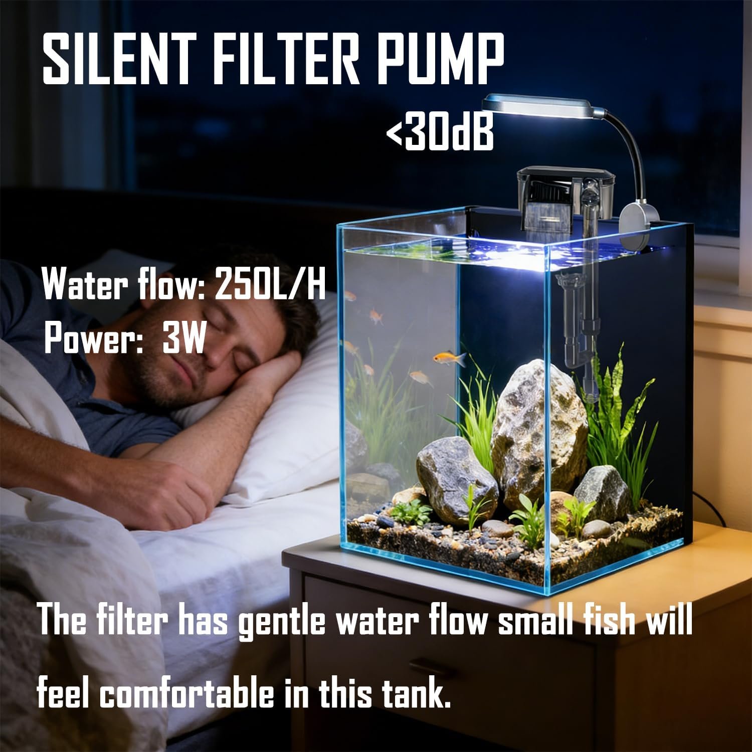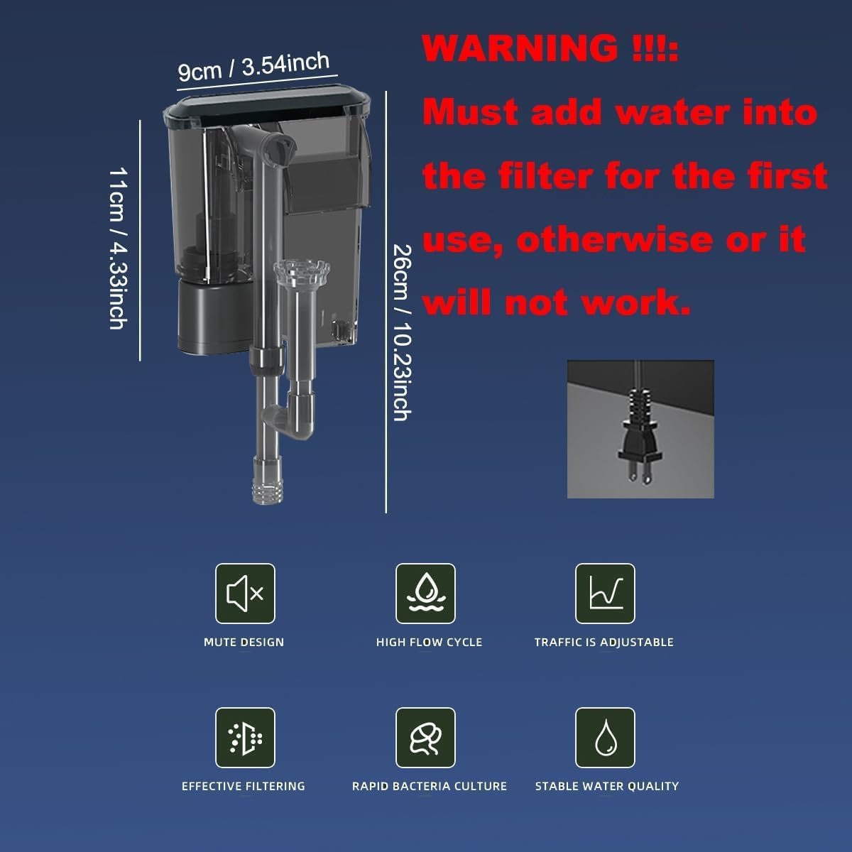 3W hang on back filter, adjustable water flow