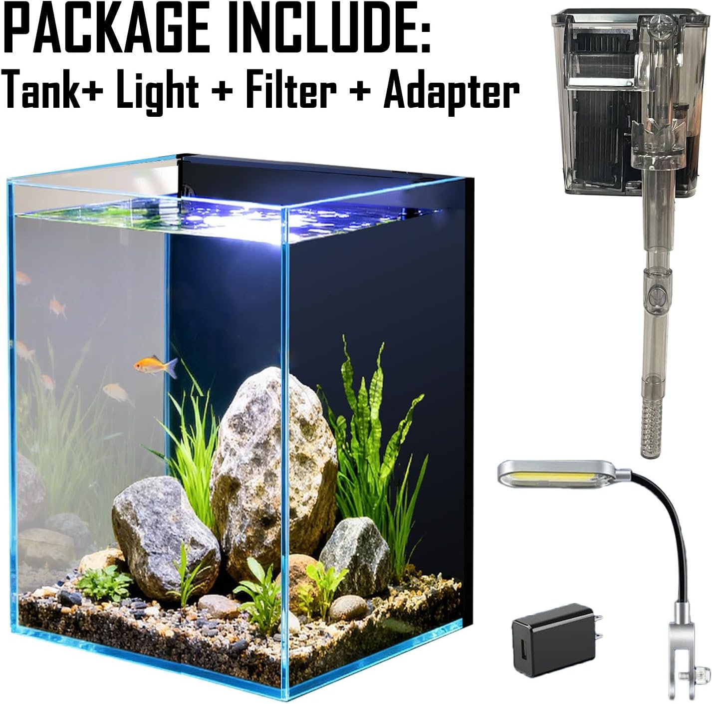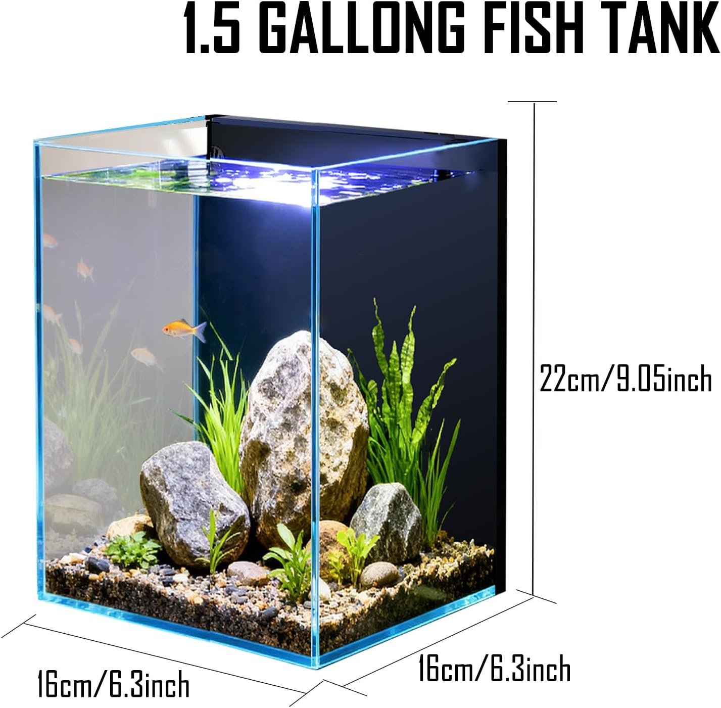 1.5 Gallon Fish Tank Starter Kits, Nano Glass Aquarium with Filter, Led Light for Aquascape DIY Small Betta Fish Tank