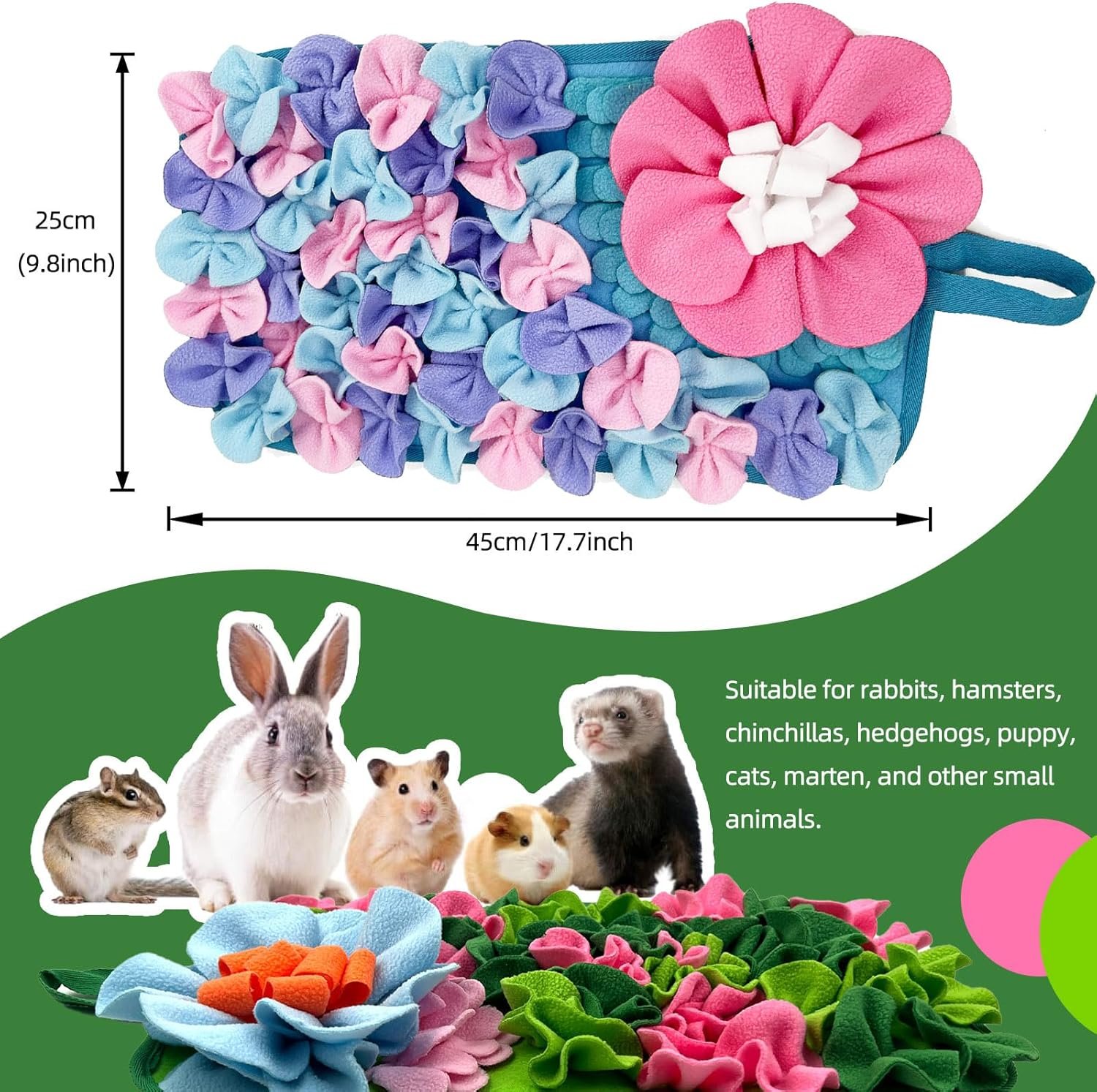 【Safe & Eco-Friendly Material:】 Crafted from sustainable, safe polyester fabric, this animal enrichment foraging pad is completely secure and friendly for small animals. The non-toxic materials ensure a relaxed and worry-free foraging experience for your pets.
