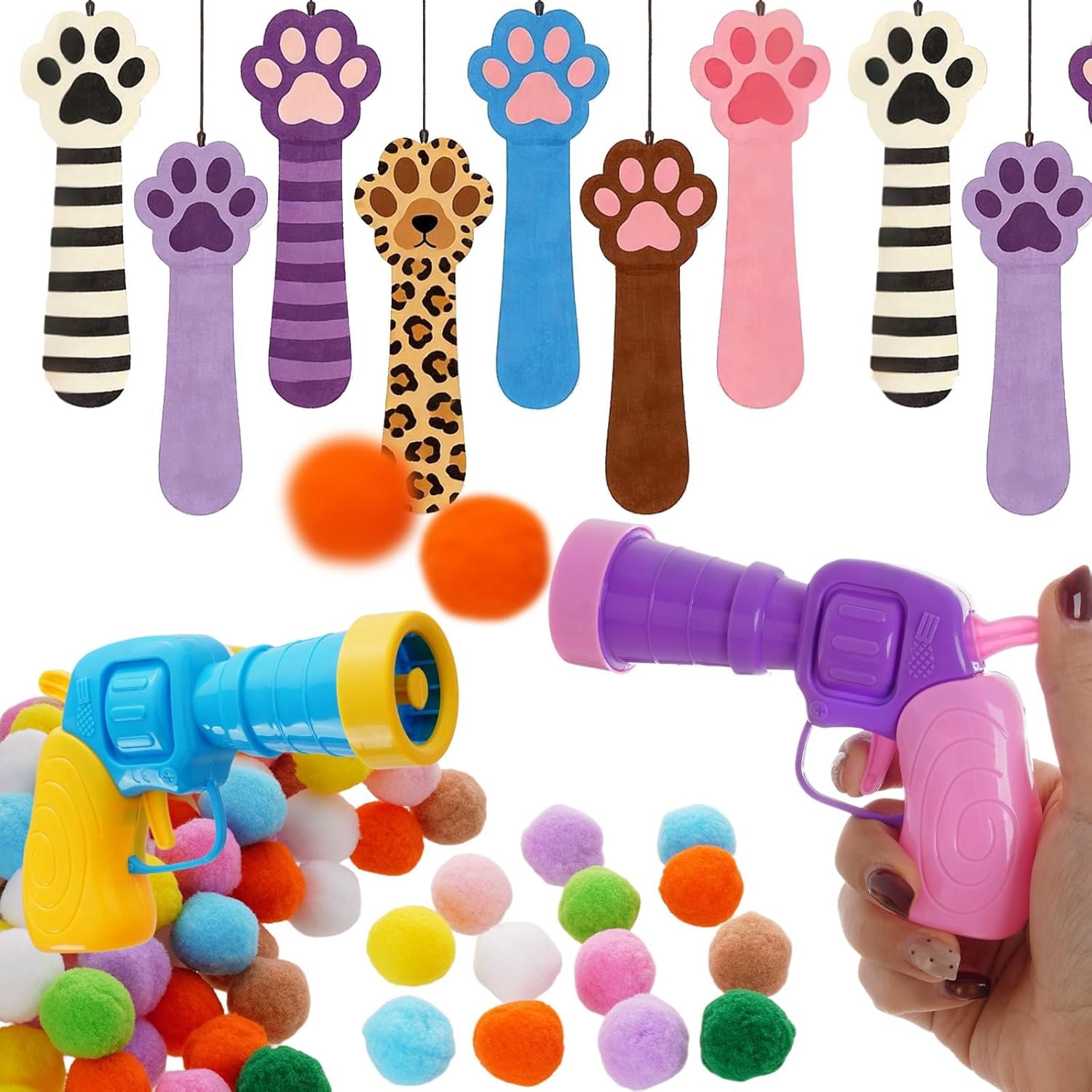 Complete Interactive Play Set: This comprehensive cat interactive toy includes 2 launchers and an abundant 100 colorful pom pom balls, providing what you need for endless hours of stimulating play. The generous quantity ensures you have plenty of balls on hand even if some get lost under furniture, allowing for continuous fun and engagement with your pet