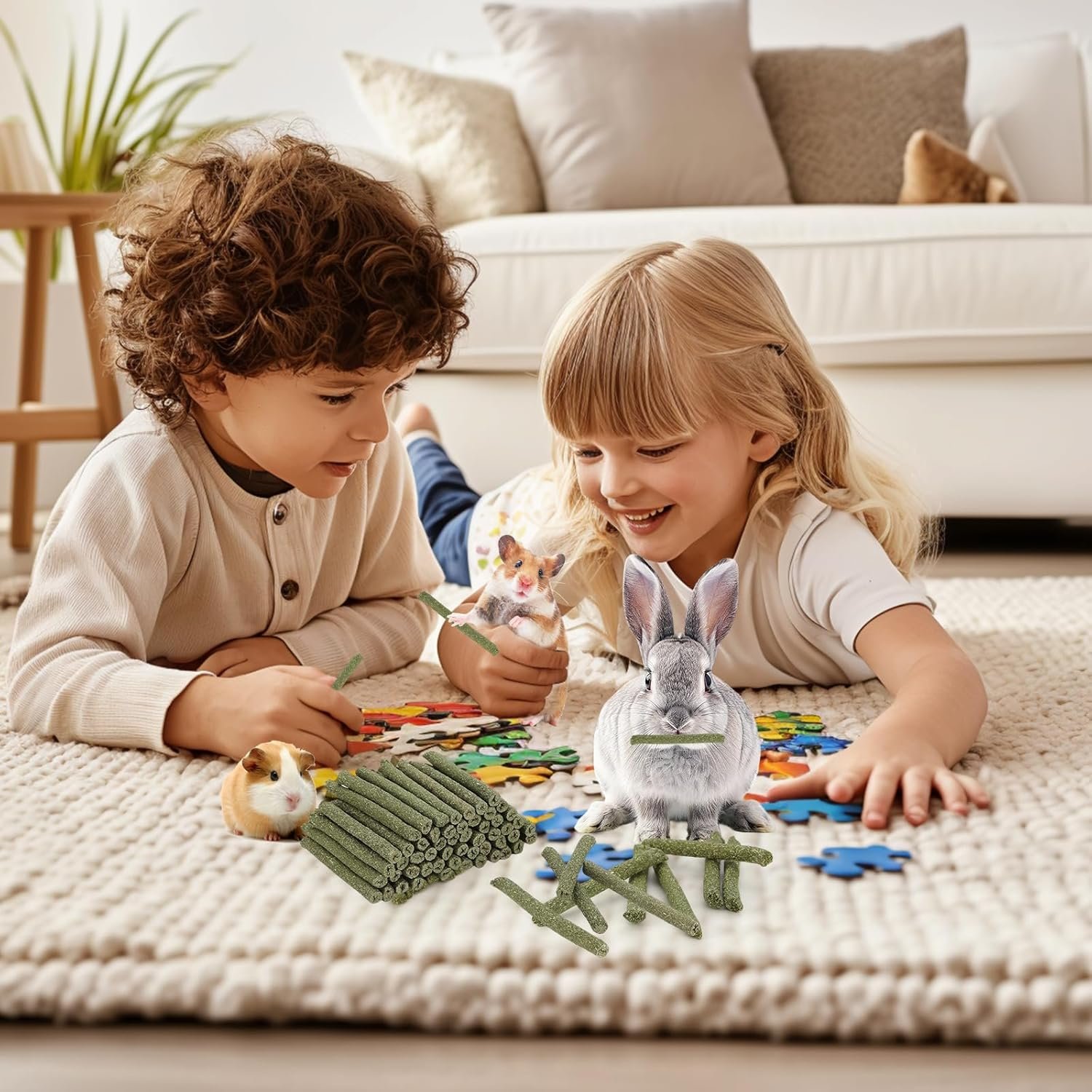 Freshness Guaranteed – Each bag contains 100 timothy hay sticks, carefully sealed to maintain maximum freshness. Air-tight package keeps the chew sticks fresh for a long time, also prevents scattering, ready to be enjoyed by your pets whenever they want a healthy snack. Timothy hay sticks provide chew toys pet treat for furry friends, ideal for rabbits, chinchillas, guinea pigs, hamsters, gerbil and other rodents. No need worry about furniture and wires being ruined any more.