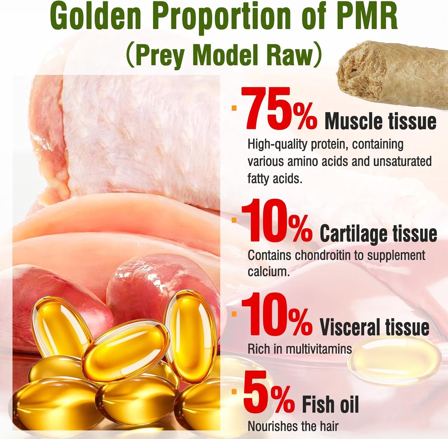 Nutritionally Balanced Prey-Model Formula: Crafted following the Prey Model Raw (PMR) golden ratio with chicken meat, thigh, liver. Delivers a powerhouse of protein, amino acids, chondroitin, and vitamins—mimicking a natural, species-appropriate diet