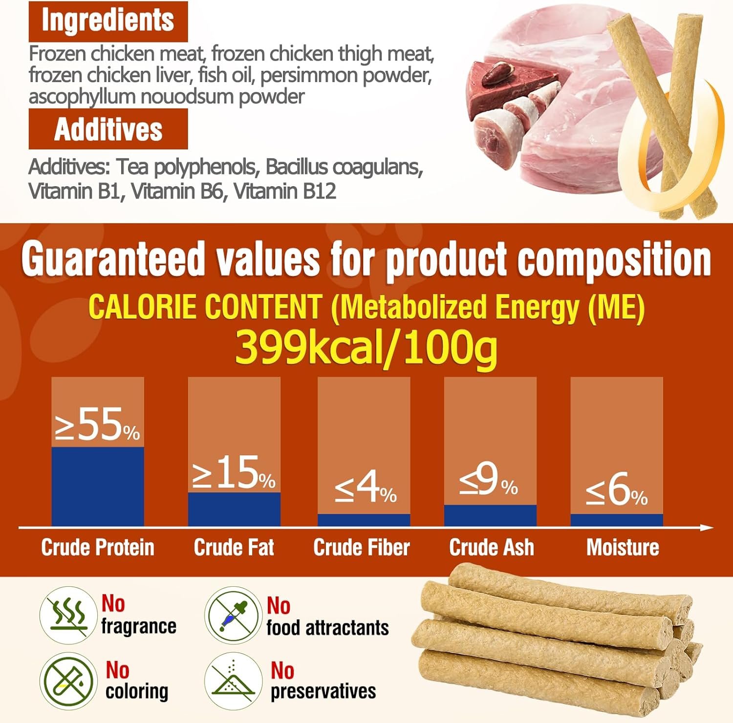 150g Freezed Dried Cat Chew Stick Chicken Flavor, Cat Dental Treats for Reduce Tartar and Freshens Breath, Feline Teething Sticks Cats Treats Snack