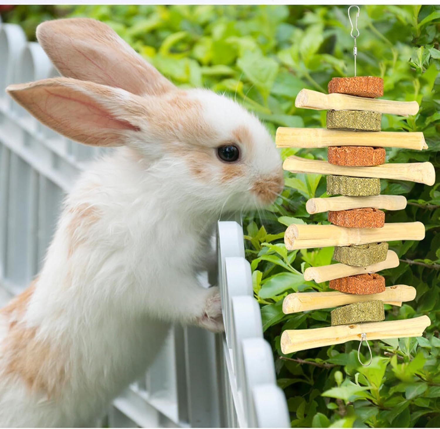 Dental Health Chew Toy – Lexziuo 1PCS Rabbit Chewing Toy is made of Natural Timothy Hay & Sweet Bamboo, designed to help clean teeth, reduce tartar buildup, and prevent overgrown teeth, ensuring optimal dental health for rabbits, guinea pigs, and small rodents.