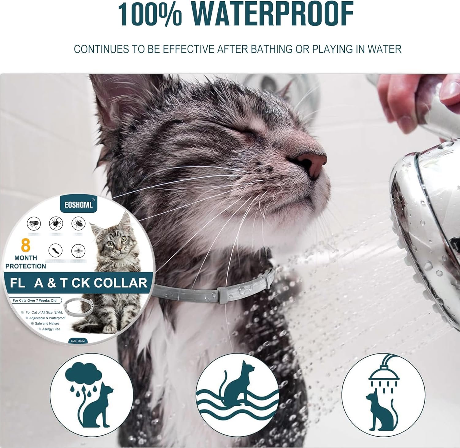 2 Pack Adjustable Collars for Cat, Prevention for 16 Months, Waterproof, 38cm for Small, Medium and Large Cats, Over 7 Weeks Old Use