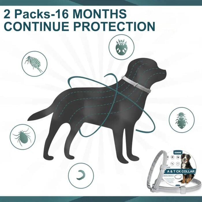 2 Pack Adjustable Collars for Dog, Prevention for 16 Months, Waterproof, 63.5cm for Small, Medium and Large Dogs, Over 7 Weeks Old Use