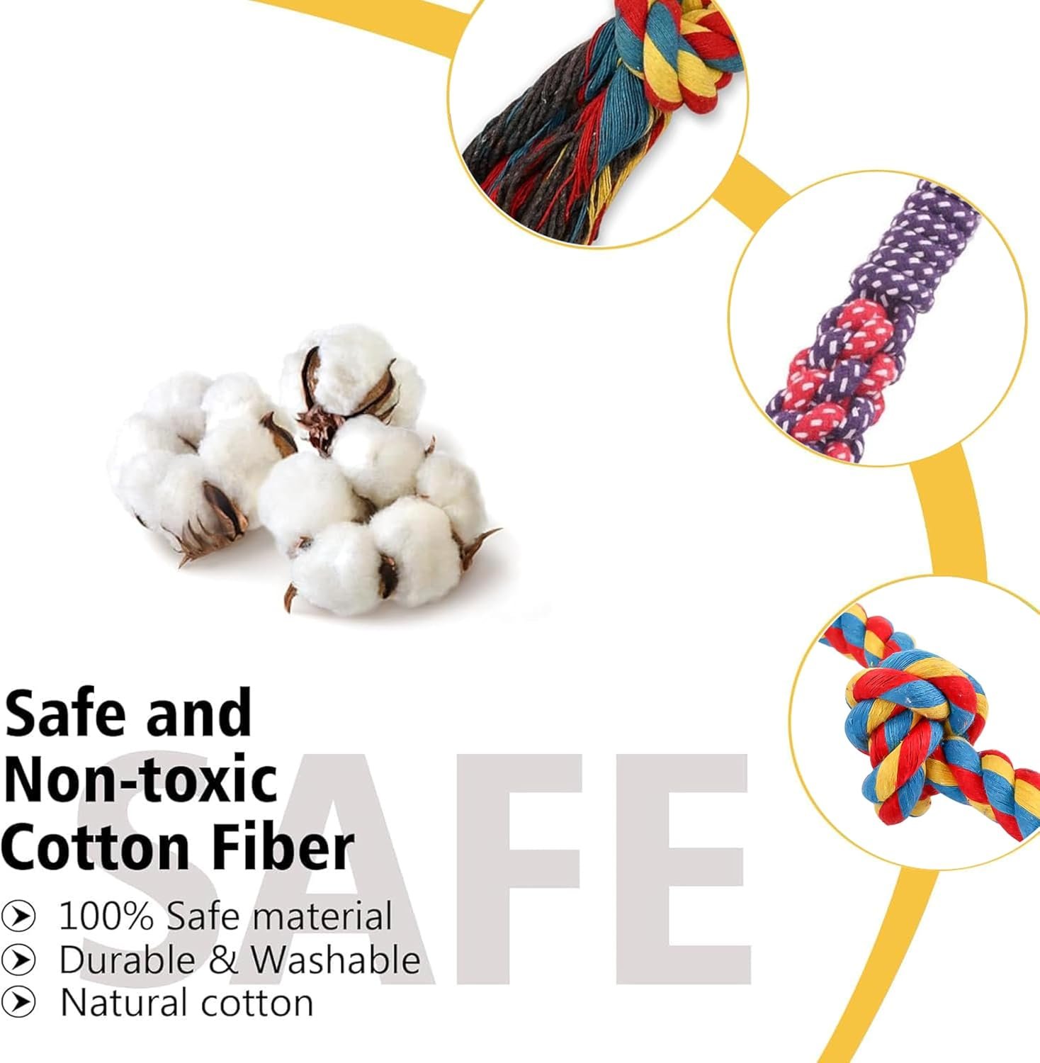 100% Natural Cotton Dog Chew Toy for Aggressive Chewers – Soft yet Durable, Safe & Odorless! The textured cotton fiber deeply cleans teeth, massages gums, and removes tartar—gentle on enamel, never damaging your dog’s teeth.