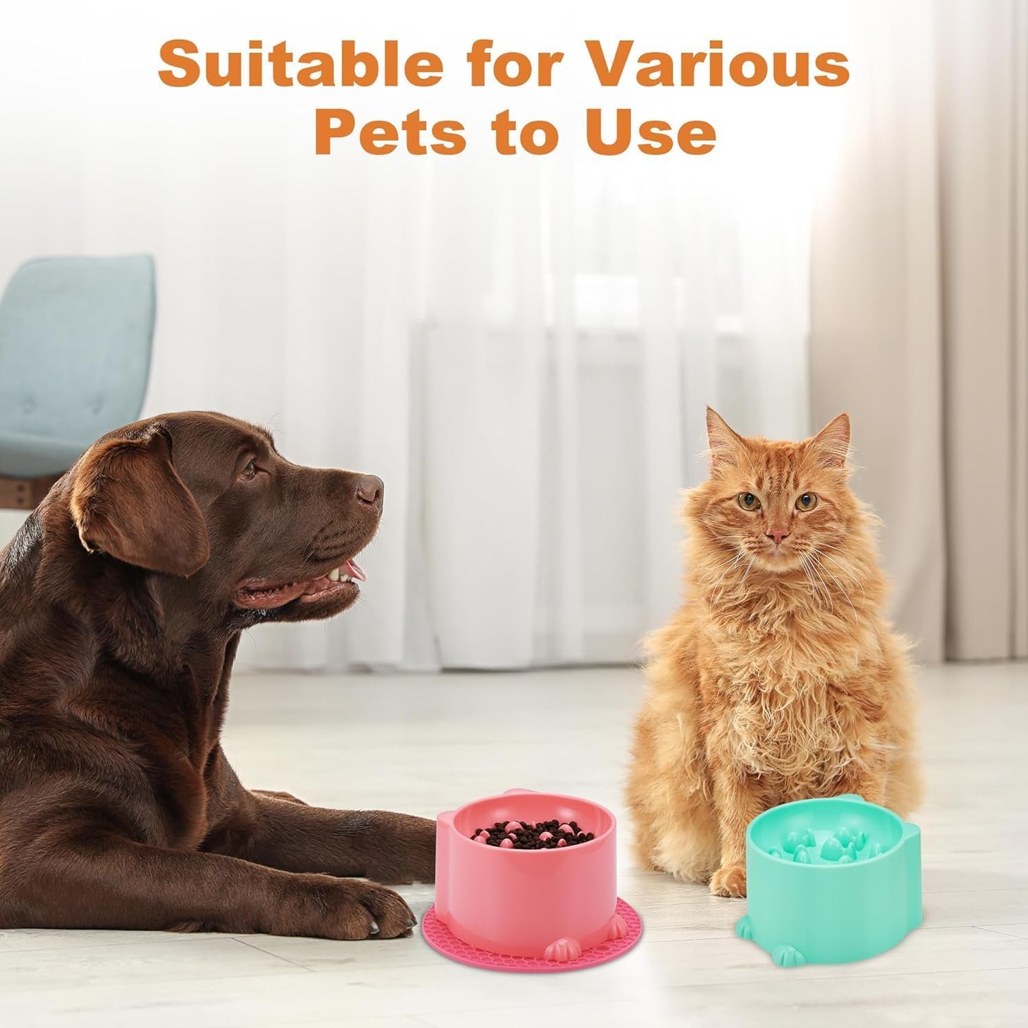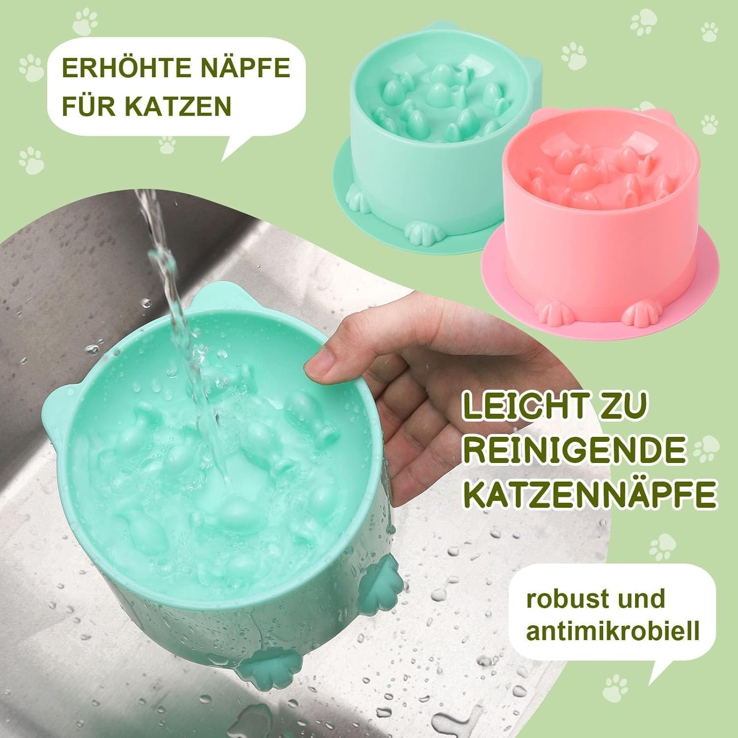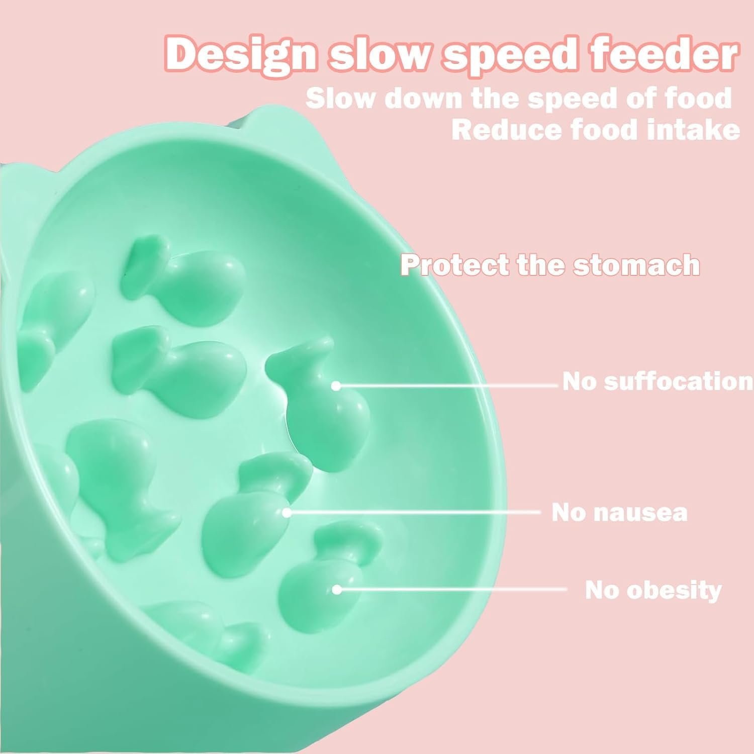【Package Contents】You will receive 2 Pcs slow feeder cat bowls, 1 Pink & 1 Green, with 2 Anti-Slip Base, Compatible with all types of cat food, they cater to your pet’s dietary needs, perfect for households with multiple pets.