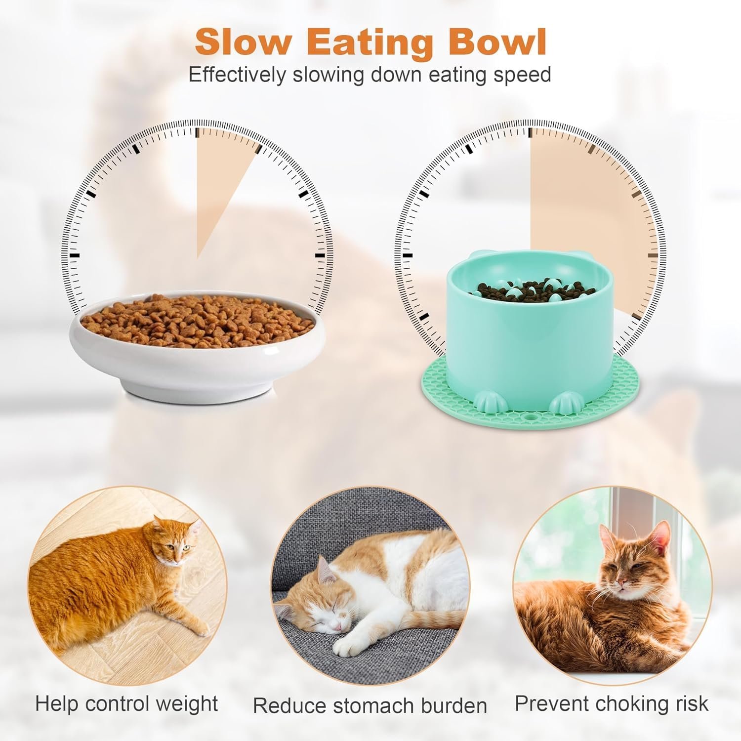 【Healthy Diet】Cat slow feeder has a fluted design that extends the eating time, helping to slow down your cat’s eating speed and avoiding health problems such as bloating, vomiting, indigestion and obesity caused by eating too fast. Helps your cute furry friend develop healthy eating habits.