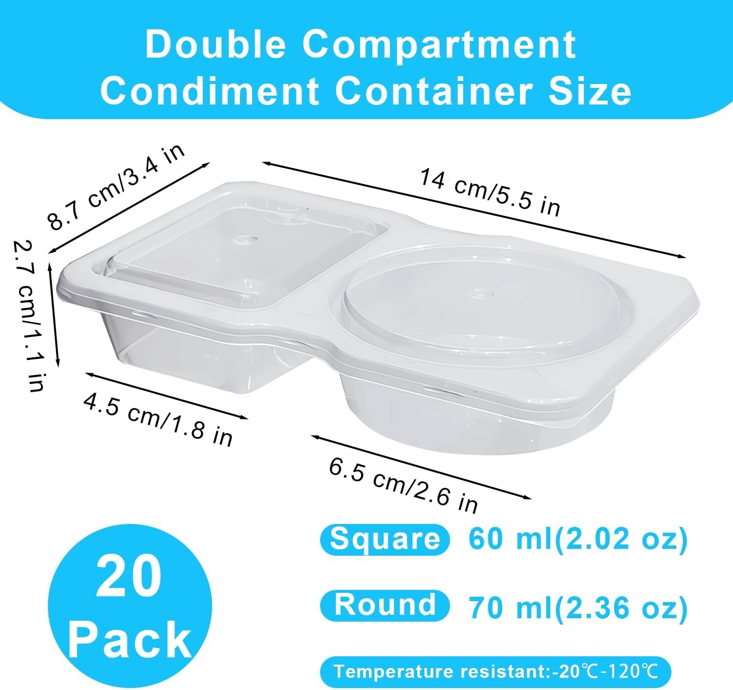 20-Pack Reusable Double Compartment Snack Containers with Lids – BPA-Free PP Meal Prep Bento Boxes for Kids Lunch, Fruit & Dips, Microwave/Dishwasher Safe