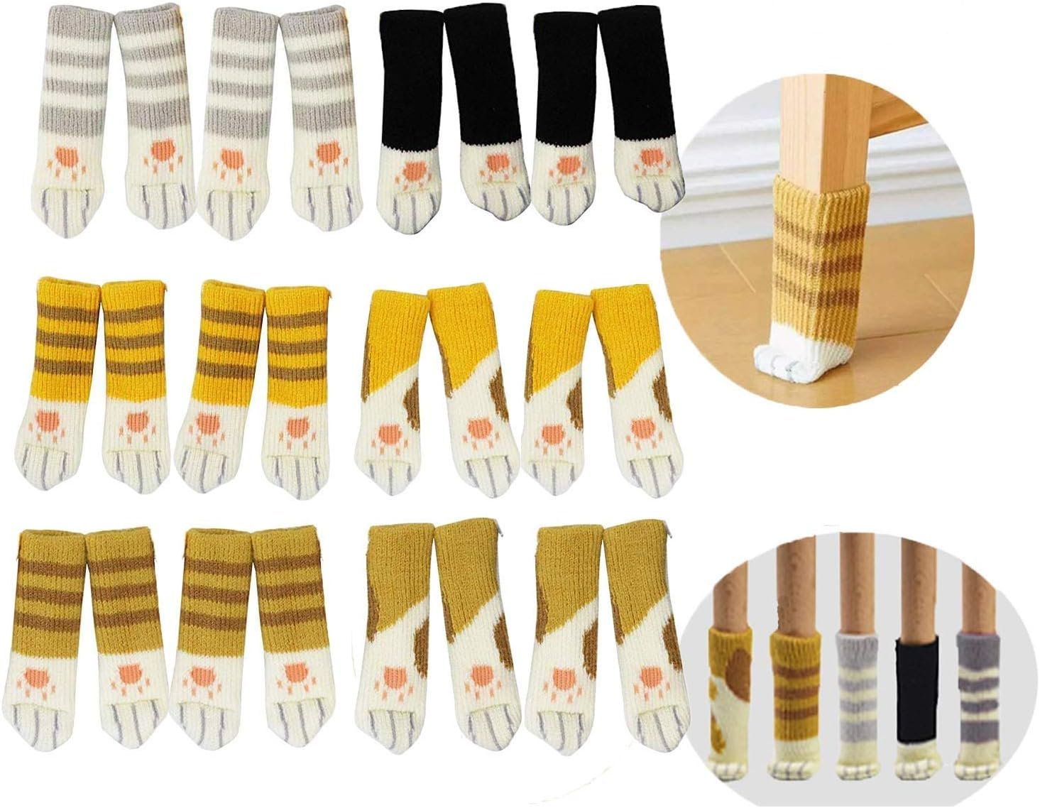 24PCS Chair Leg Floor Protector Furniture Feet Pads Floor No Slip Chair Socks Covers,6 Set Cat Paw