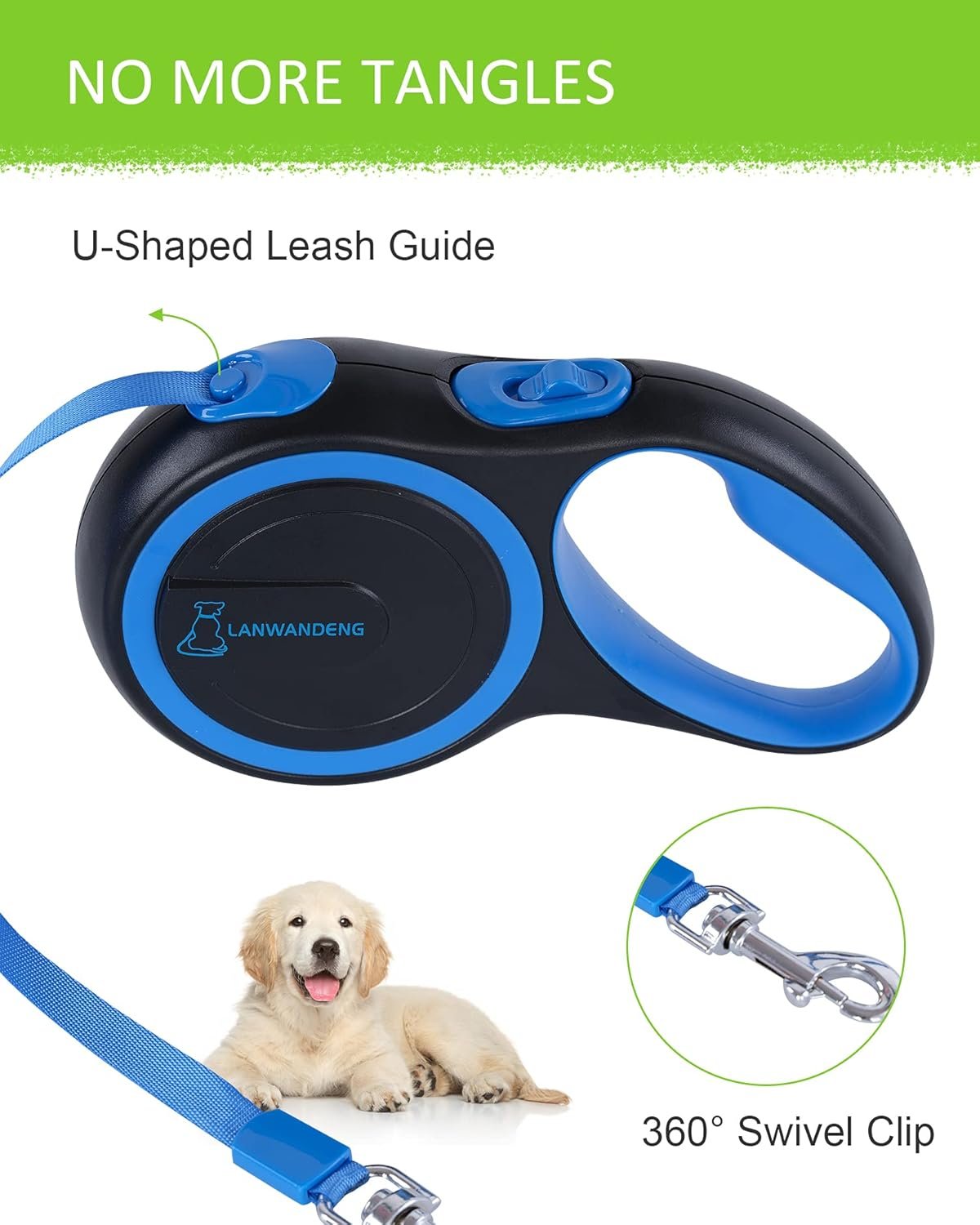 Heavy Duty Internal Coil: Top durability internal coil spring for consistent retraction several years, perfect for large dogs up to 110 lbs.