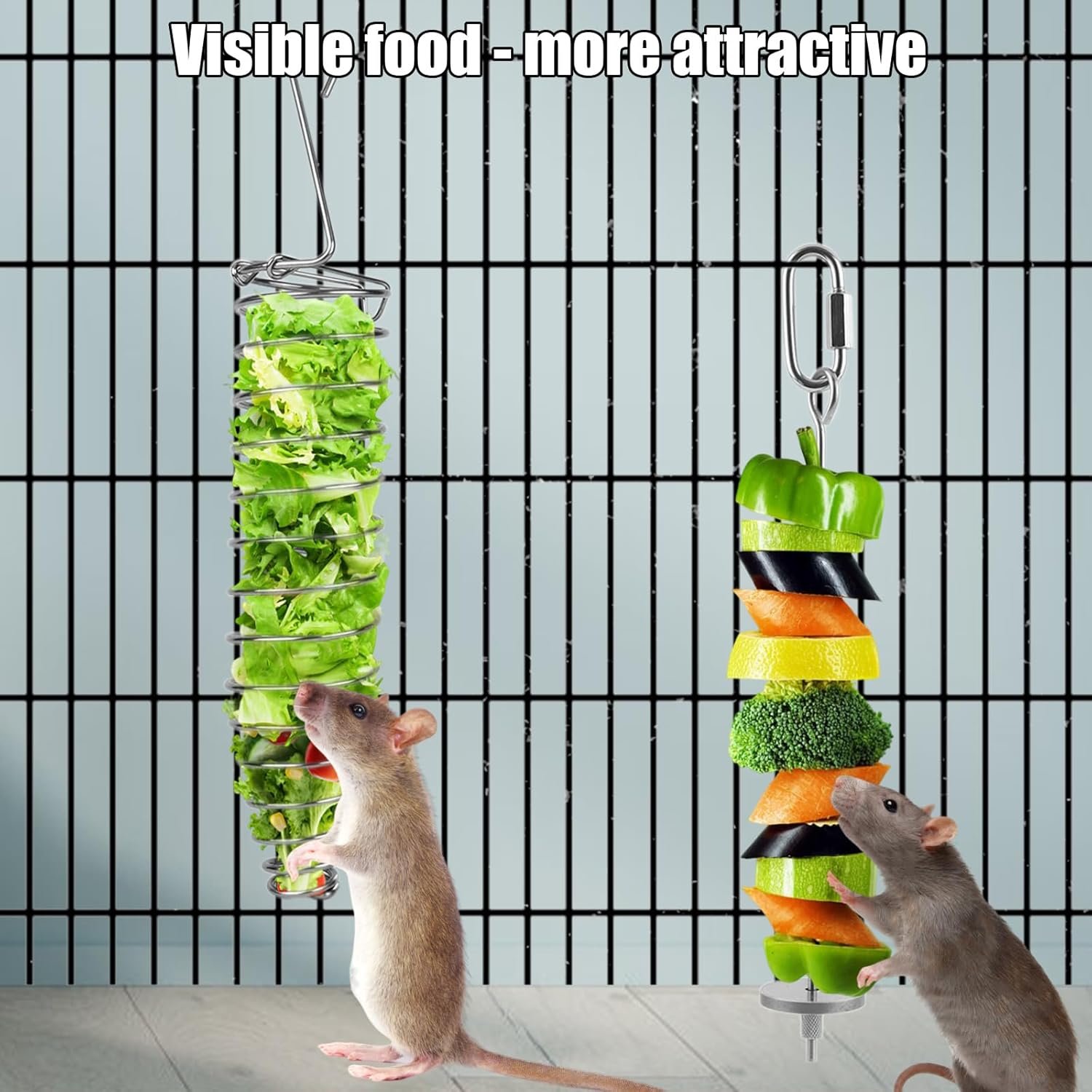 Special Design: Our rat foraging toys are thoughtfully designed to prevent pets from getting their heads stuck during play or feeding. The open mesh basket and skewer allow pets to see and smell the food clearly, making it more attractive to your pet.