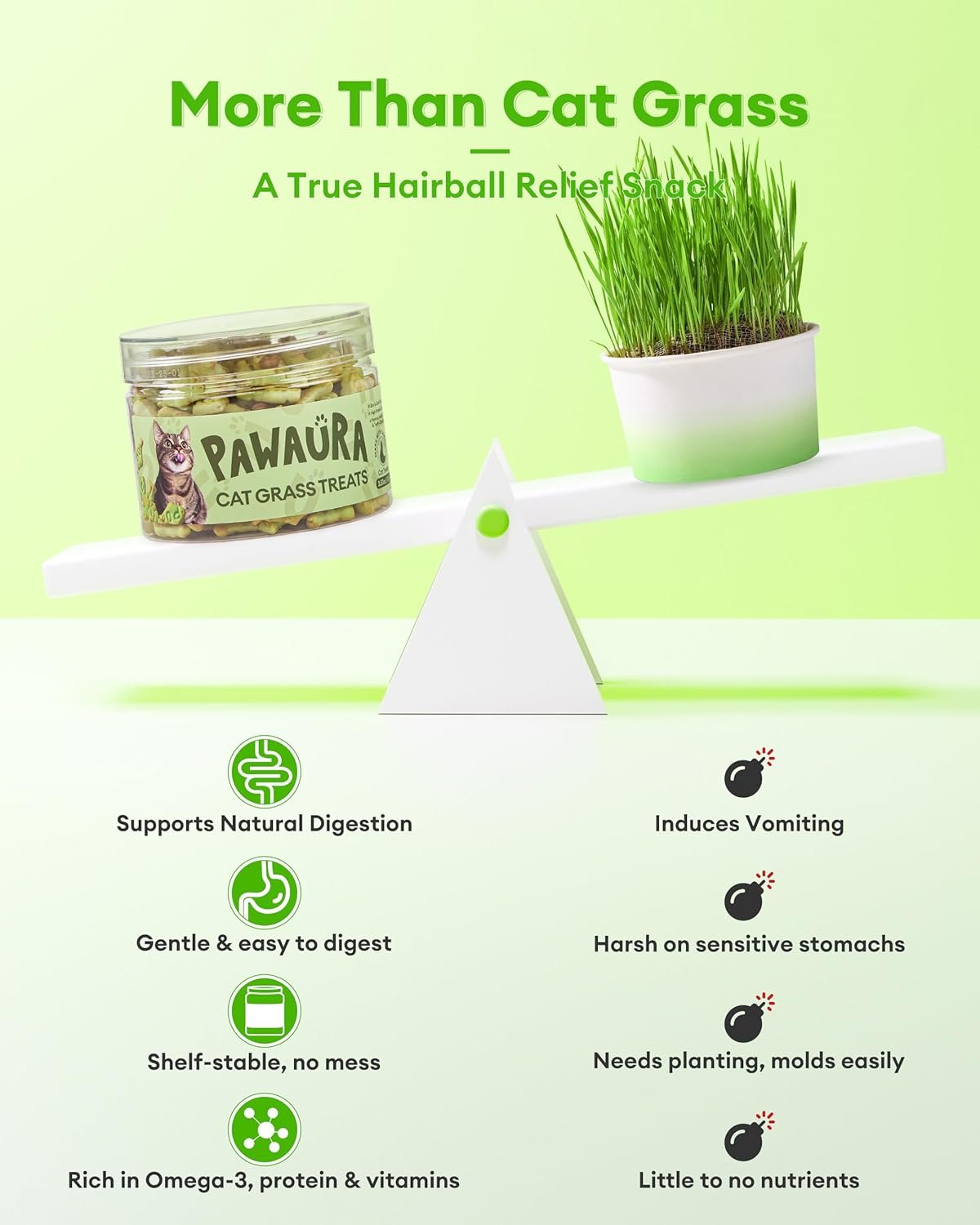 【Hairball Control & Digestive Health】Made with natural fiber from barley grass to support digestion and reduce hairballs. Helps remove existing hairballs and prevent new ones, promoting overall digestive health—ideal for long-haired cats or frequent groomers.
