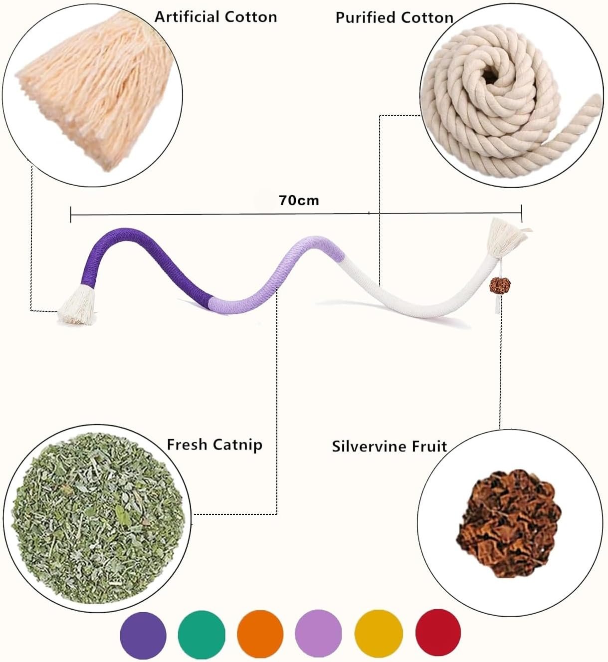 Self-Entertainment: Keep your cat entertained and engaged independently with this rope toy. The durable materials and enticing shape provide long-lasting fun, allowing your cat to enjoy hours of self-amusement while satisfying their natural curiosity. The tail of the toy features a catnip-infused fruit, attracting your cat for extended playtime.