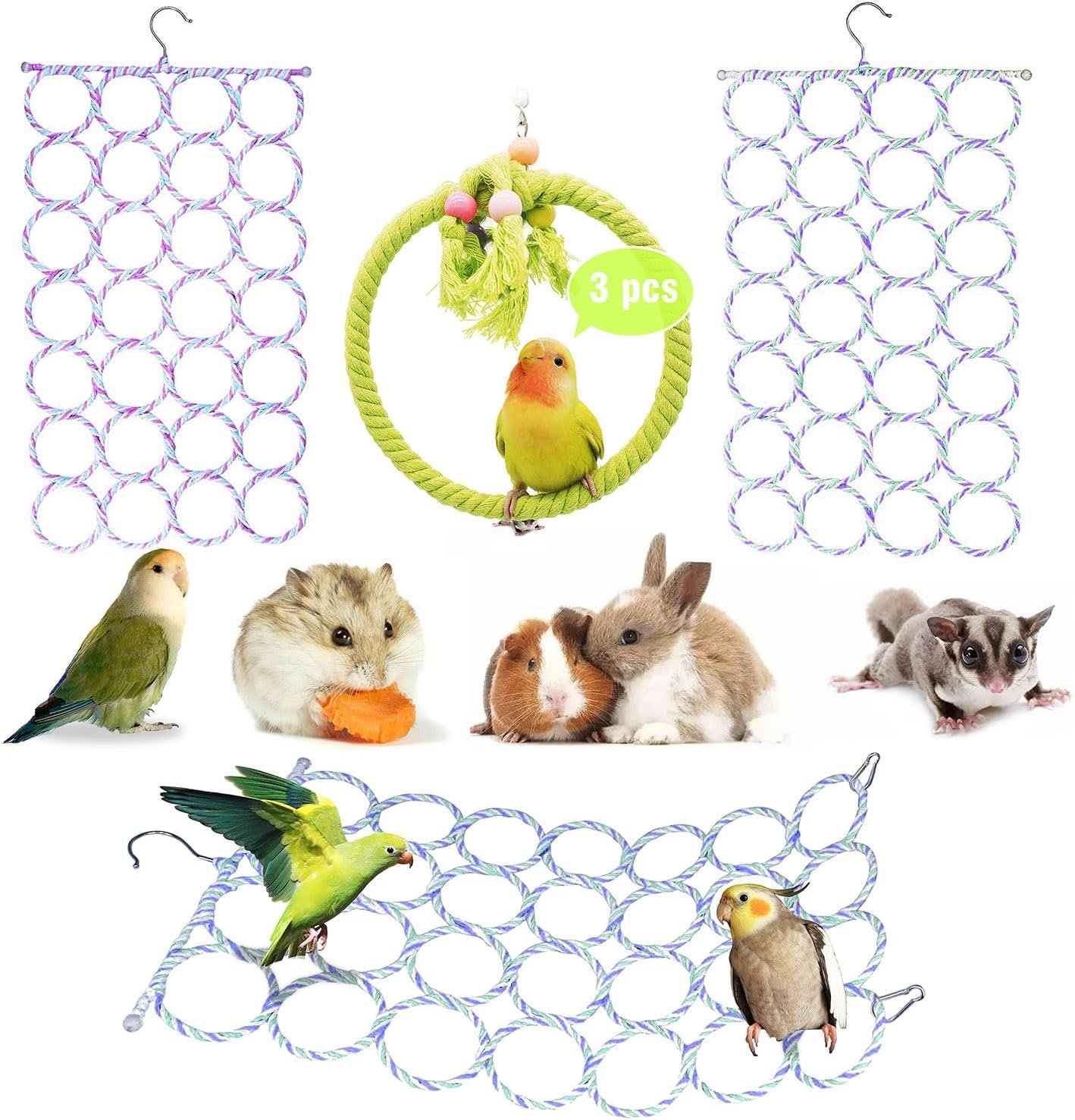 3 Pack Swing Hanging Toys,Bird Climbing Rope Net Ladders Small Medium Pet Activity Toy Suitable for Parakeet,Cockatiel,Cockatoo,Hamster,Rat,Ferret(Random Color)