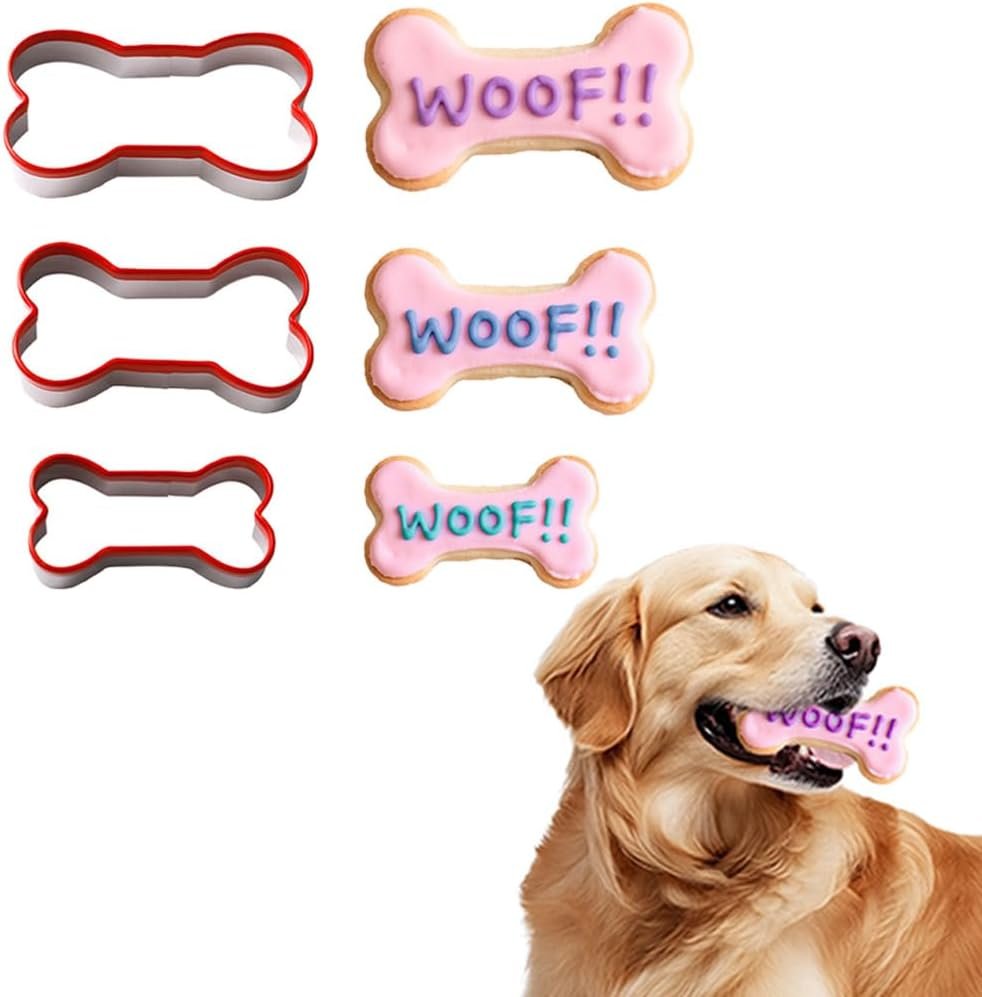 [3 Different Sizes] Dog bone cookie cutter set including 3 different size of 2.36”, 3.14”, 3.9”, to suit dogs of all breeds and sizes.