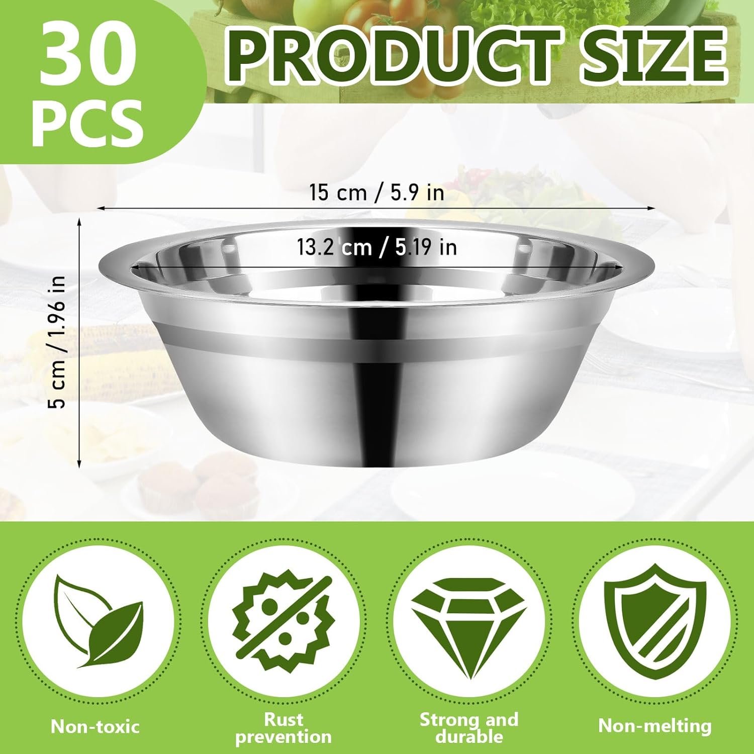 30 Pack Small Stainless Steel Bowls, 6 Inch Wide Food Prep Bowls Bulk Kitchen Metal Bowl with Flat Base for Meal Prep Cooking Serving Mixing (500ml/16oz)