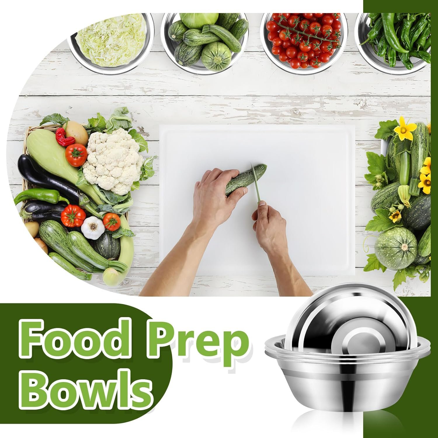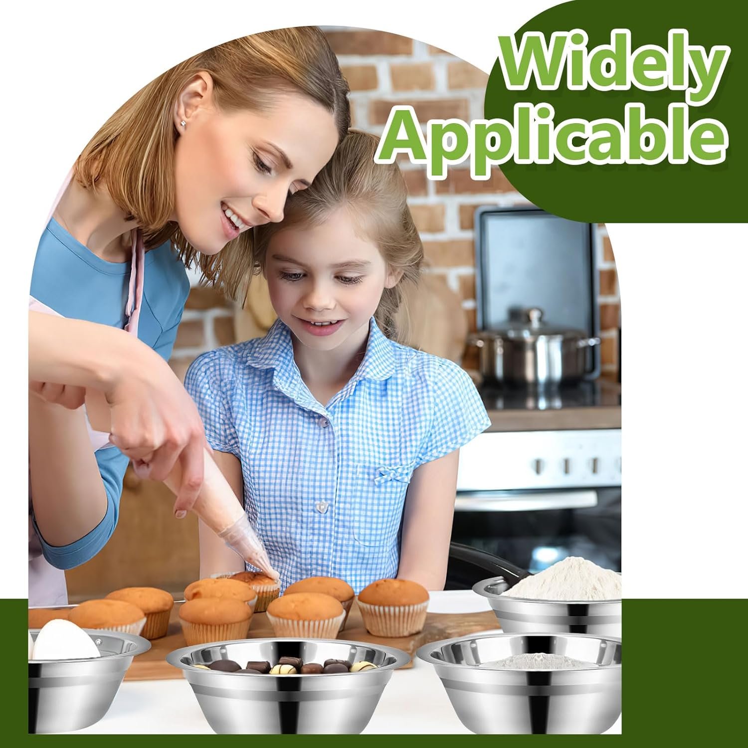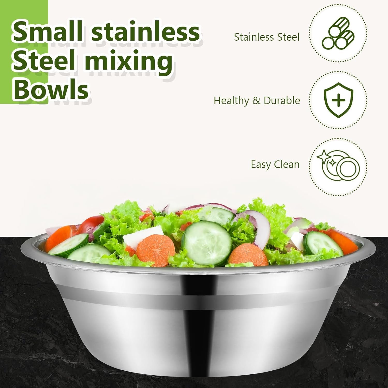 Stable and Stackable:These small food prep bowls are designed with a flat bottom to prevent slipping or tipping while mixing. And metal snack bowls are stack to save space when not in use, making them a practical tool in the kitchen