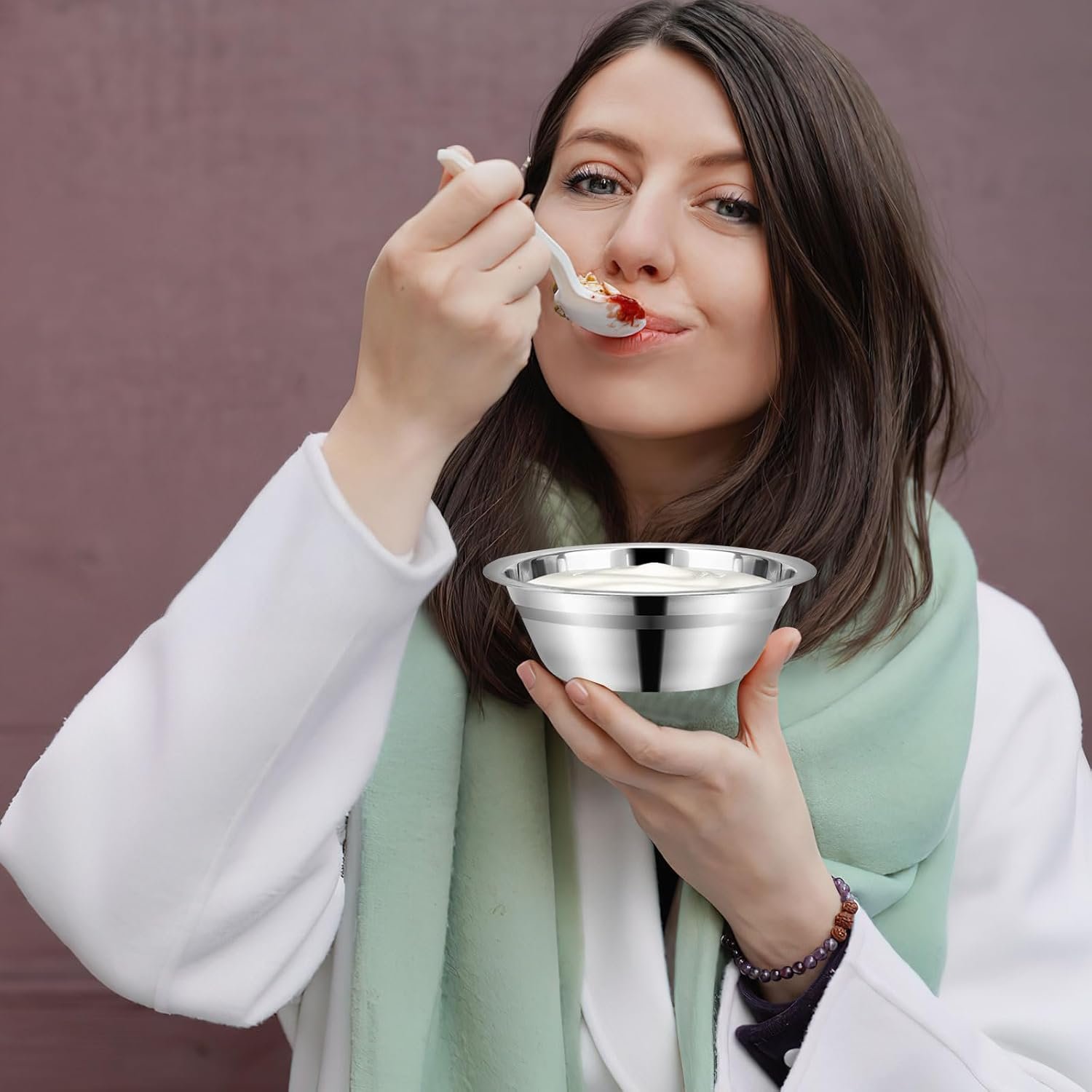 Wide Application: Our stainless steel snack bowls can be used as small mixing bowls or serving bowls in restaurants or at home. Whether you’re a professional chef or a home cook, reusable metal bowl is ideal for mixing and preparing small amounts of ingredients. They can be applied widely for hotels, restaurants, deli takeout, food savers, hospitals, hiking, camping and more