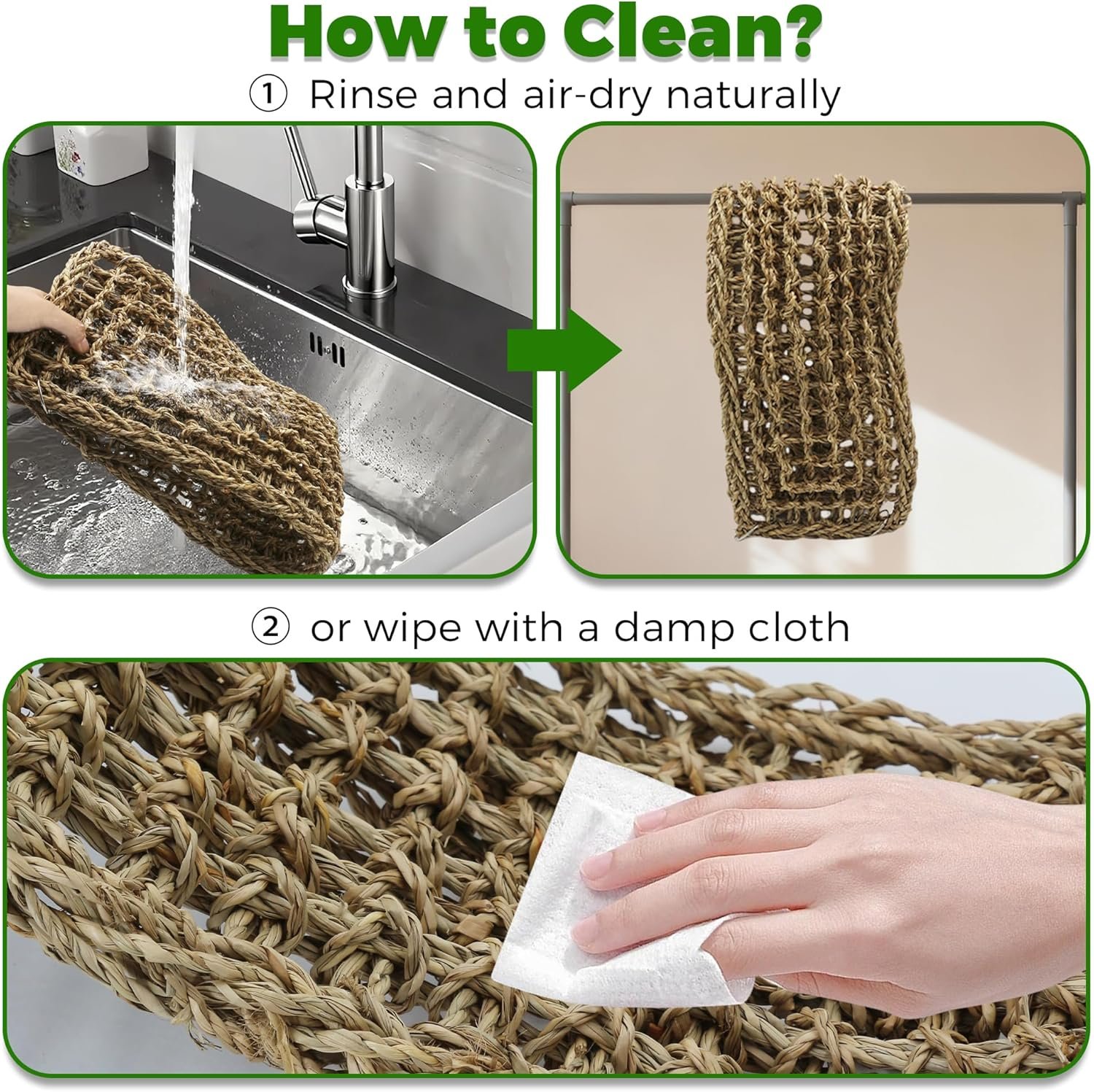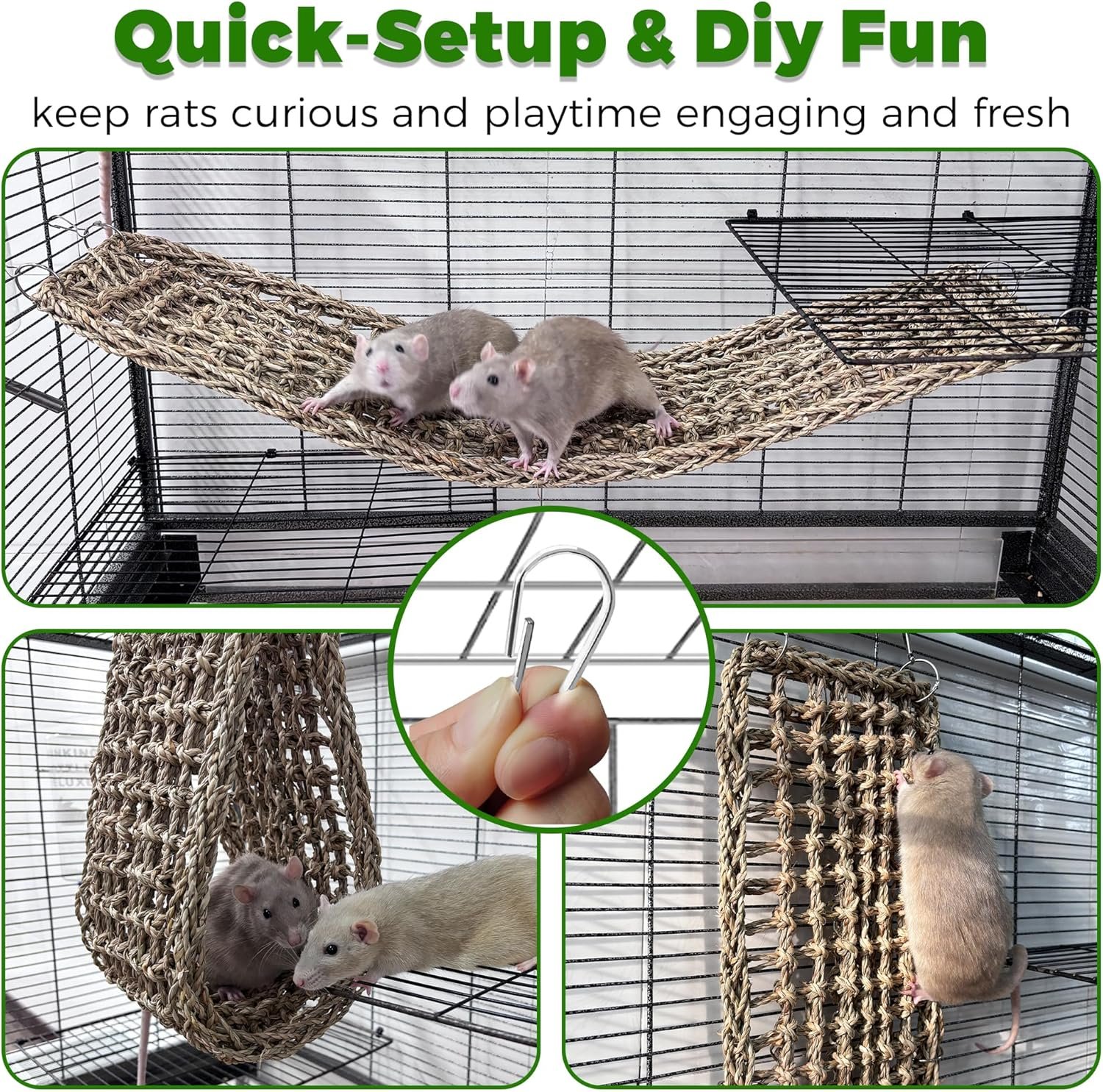 Quick-Setup & Diy Climbing Fun: This Rat Climbing Seagrass Mat has 6 sturdy hooks for easy cage setup. Arrange it freely—horizontally, vertically or as a nest for varied climbing challenges, keeping rats curious and playtime engaging and fresh