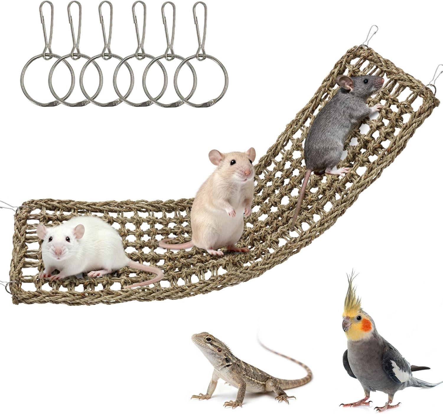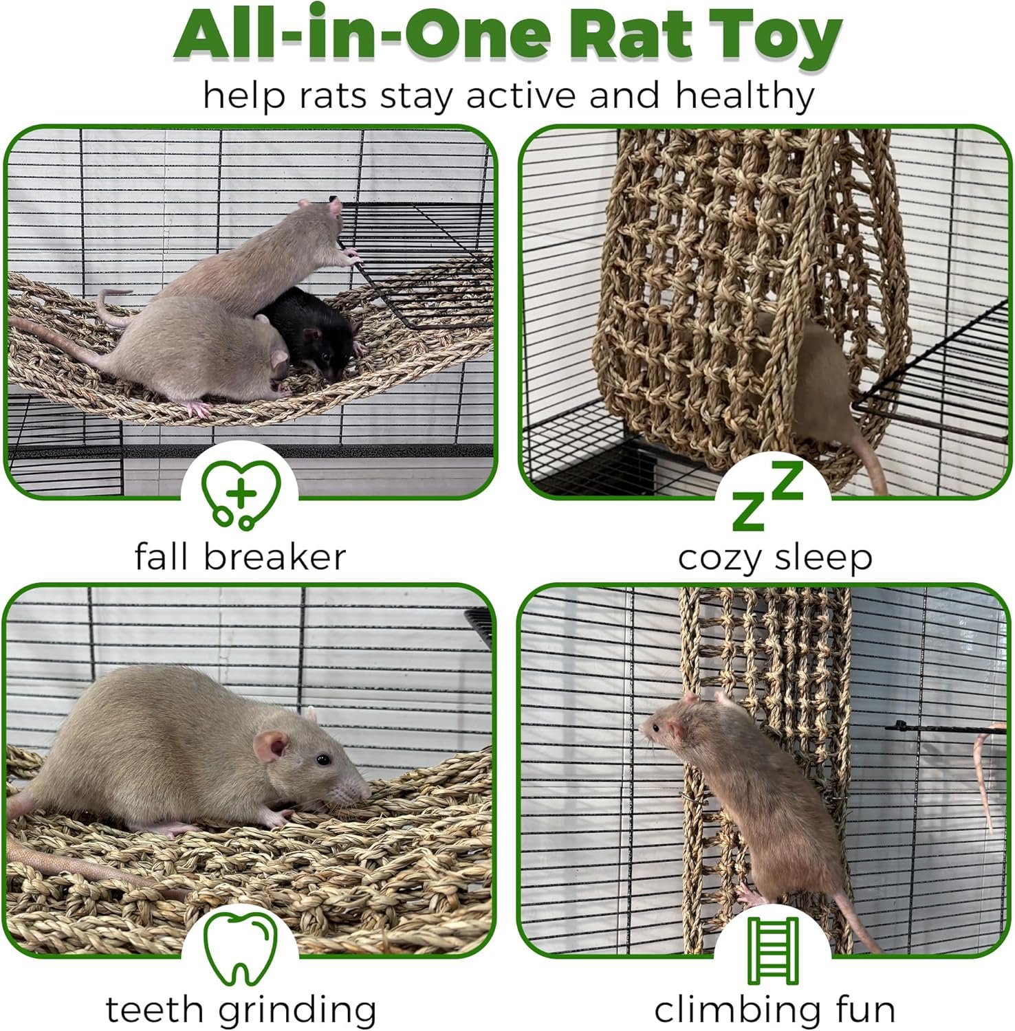 Spacious & Secure Mat: Designed for large cages, our 30”L and 7.1”W pet rat toys for pet rats climbing seagrass mat for rat offeres ample space for 2 or more rats, and is also suitable for parrots, lizards, and other small pets