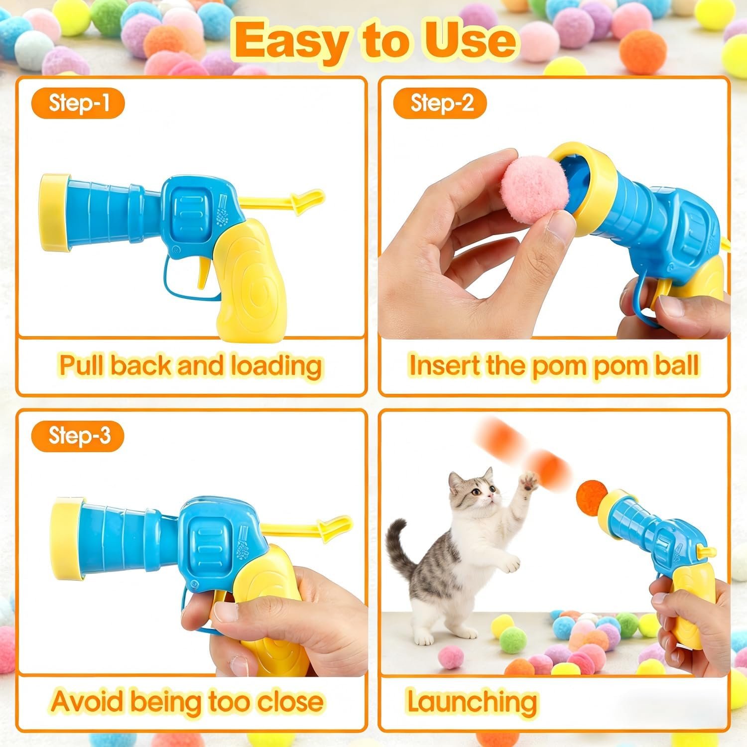 Perfect for Indoor Cats: The launcher can shoot balls up to 3.5–4.5 meters, ideal for exercise, mental stimulation, and reducing boredom for indoor adult cats and kittens.