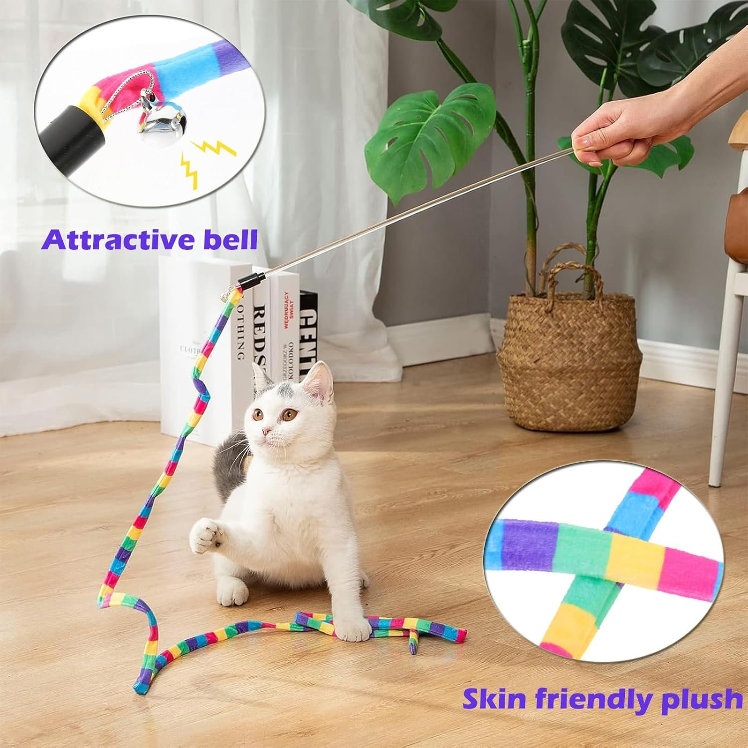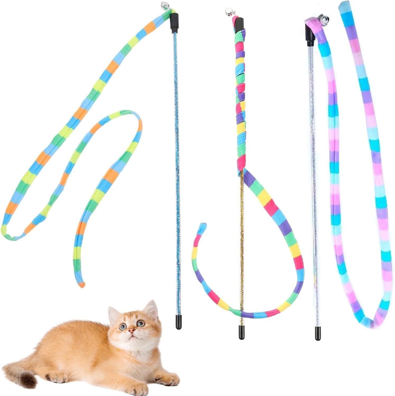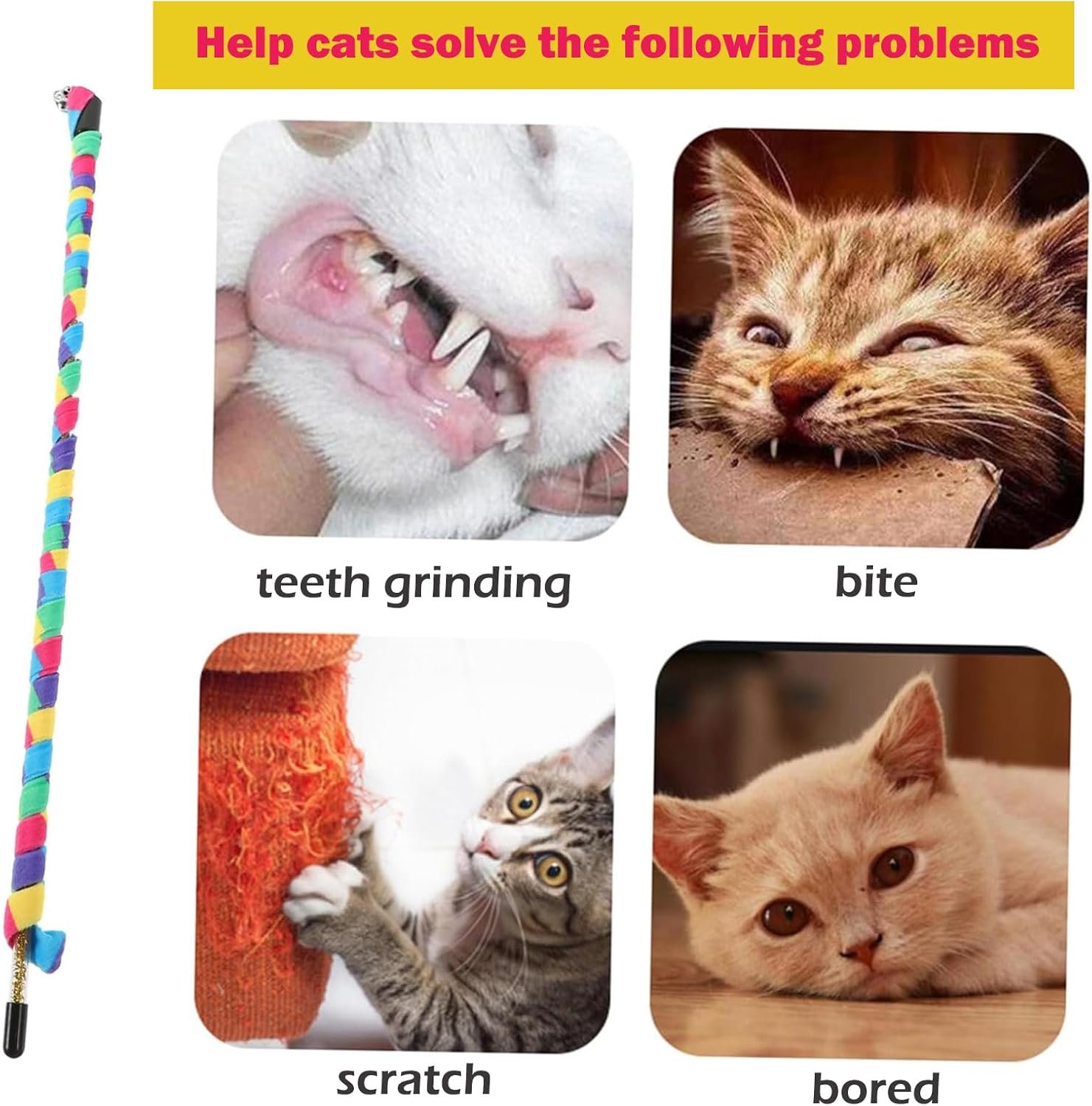 COLORFUL DESIGN : Our cat teaser wands come in seven vibrant colors,reminiscent of a rainbow or a colorful tropical paradise.This variety ensures that your cat will never grow tired of playing with them.