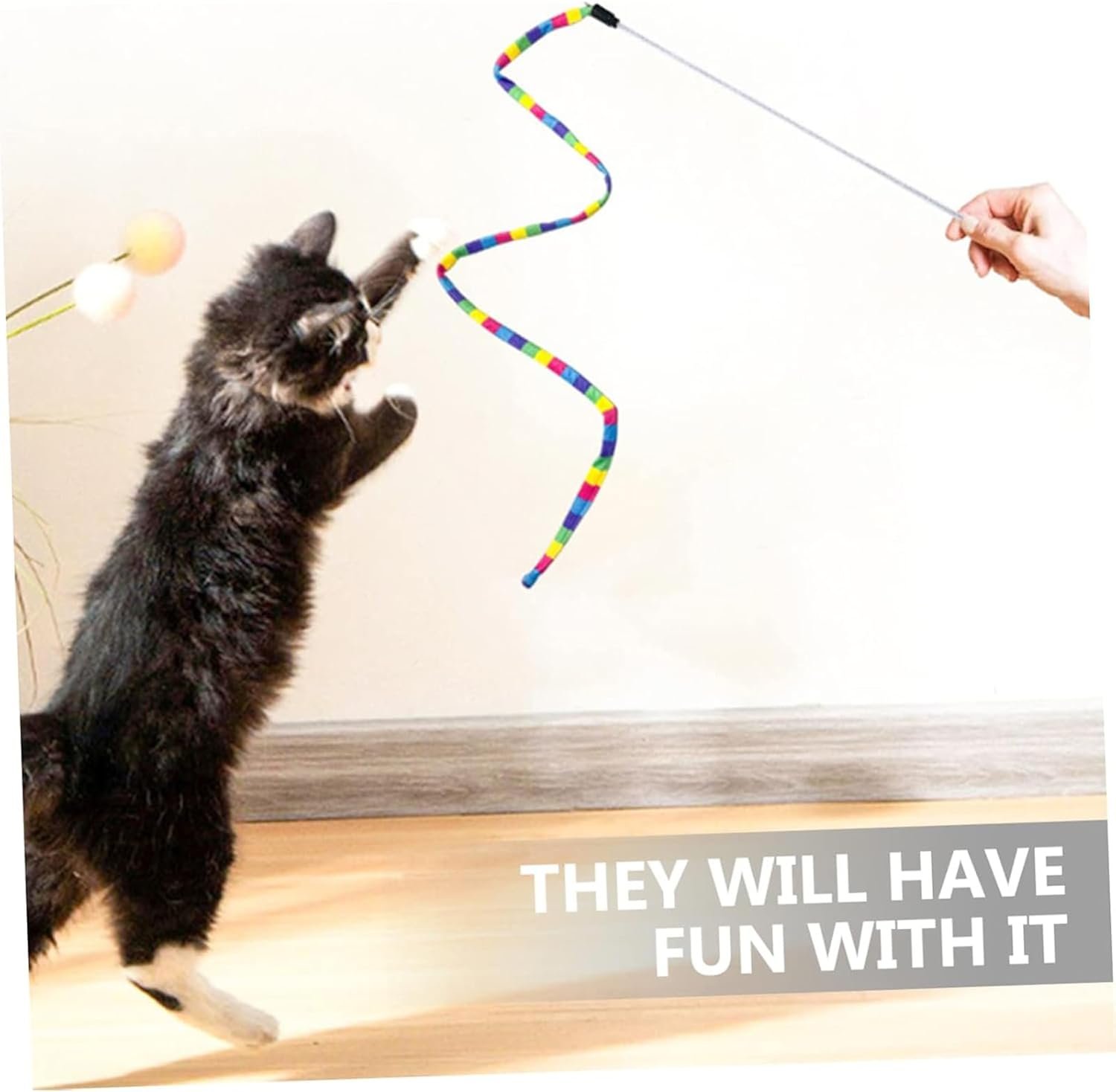 Rainbow Cat Teaser Wand Keep Your Kitten Healthy and Active While Youre Having Fun with Our Lovely Cat Teasing Toy.