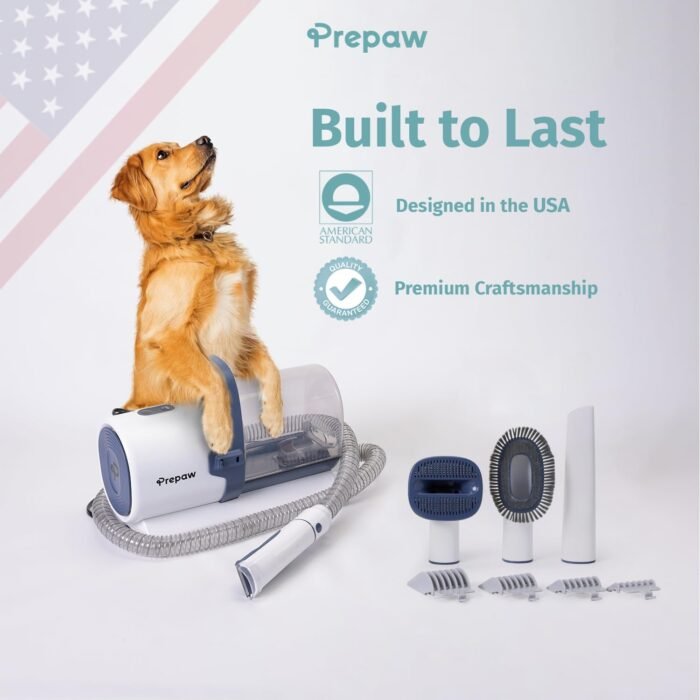 DESIGNED IN THE USA FOR PREMIUM PERFORMANCE : Our 4-in-1 pet grooming kit is proudly designed in the USA to meet the highest standards of quality and functionality. This all-in-one solution offers trimming, brushing, and hair vacuuming in one compact tool. Perfect for all pet breeds, it delivers professional results in the comfort of your home, ensuring both pet parents and pets enjoy an easy, efficient grooming session every time.