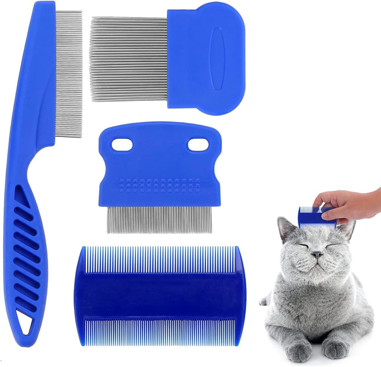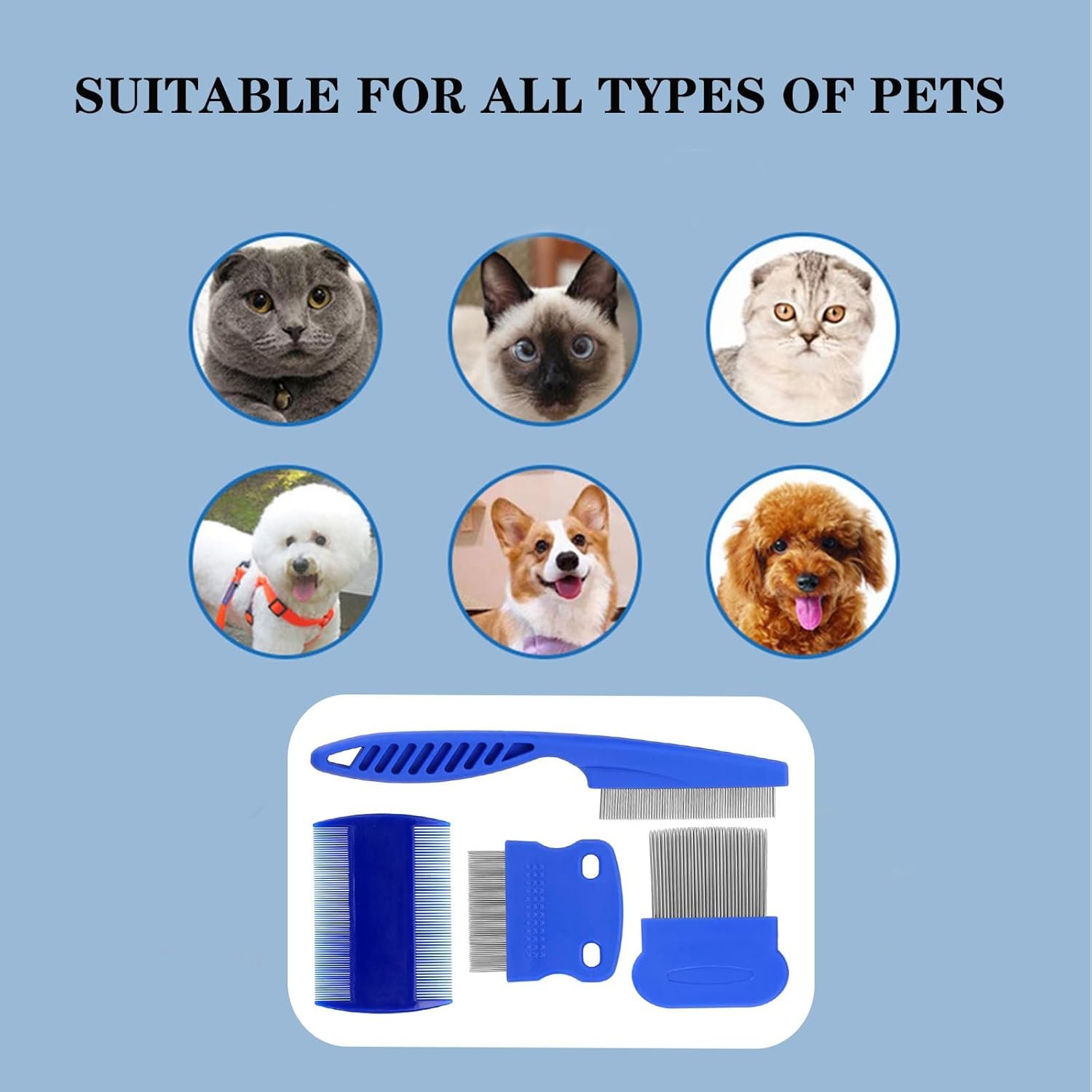 4 Pack Different Kinds Flea Combs, Stainless Steel Round Teeth Dog Cat Lice Combs,Pet Dog Cat Flea Comb Tear Eye Stain Remover Combs, Removes Tangles, Dirt, Fleas, Lice, Ticks, for Pets Hair Comb
