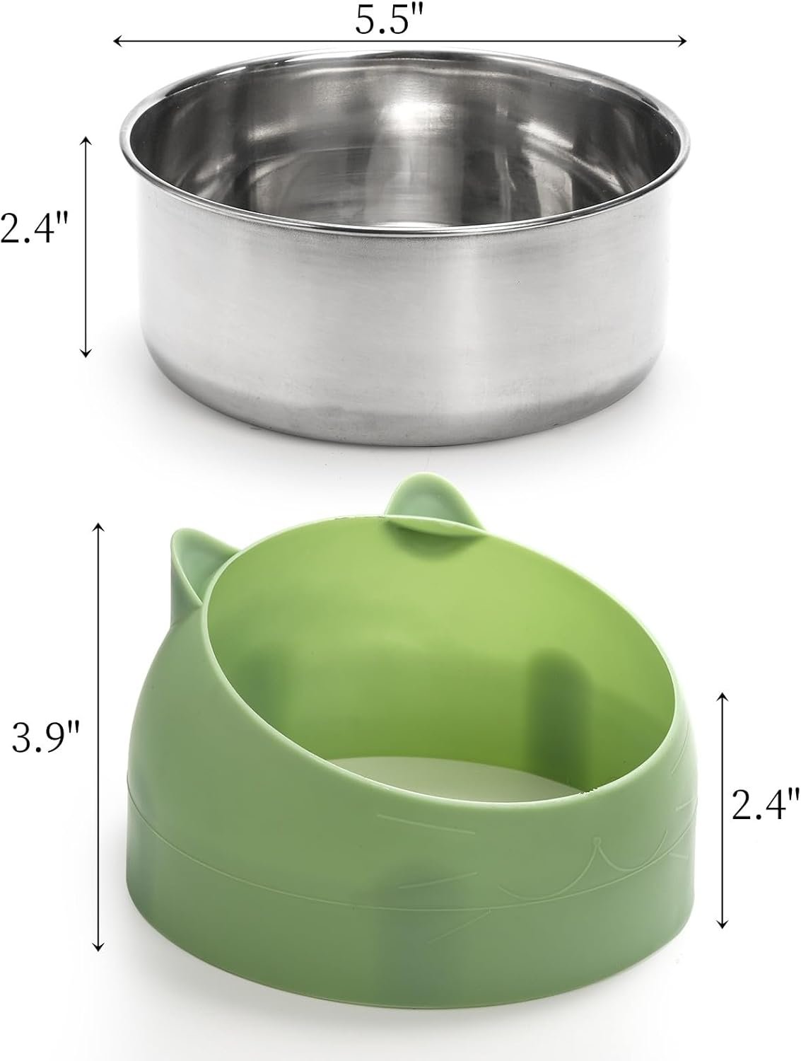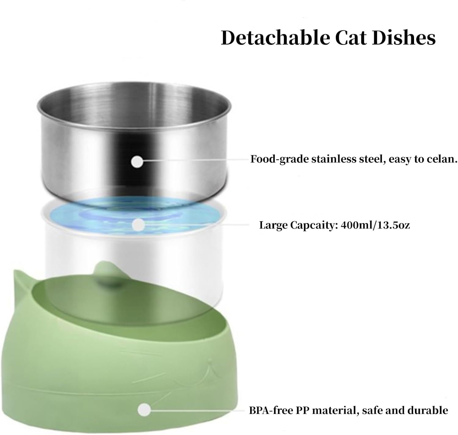 Detachable Cat Dishes: The raised cat food bowls have a detachable design to separate the stainless steel bowl and base, easy to wash.
