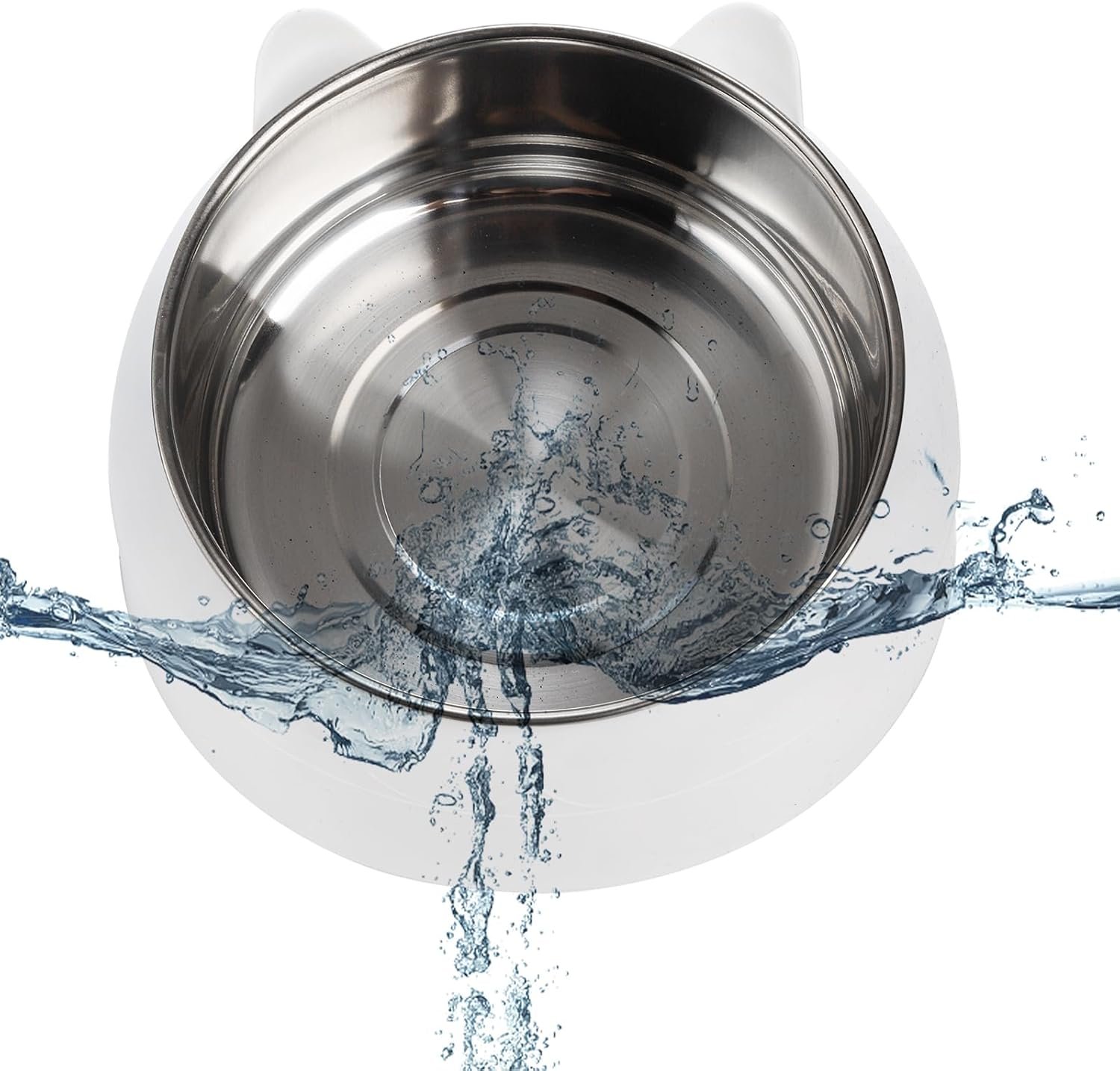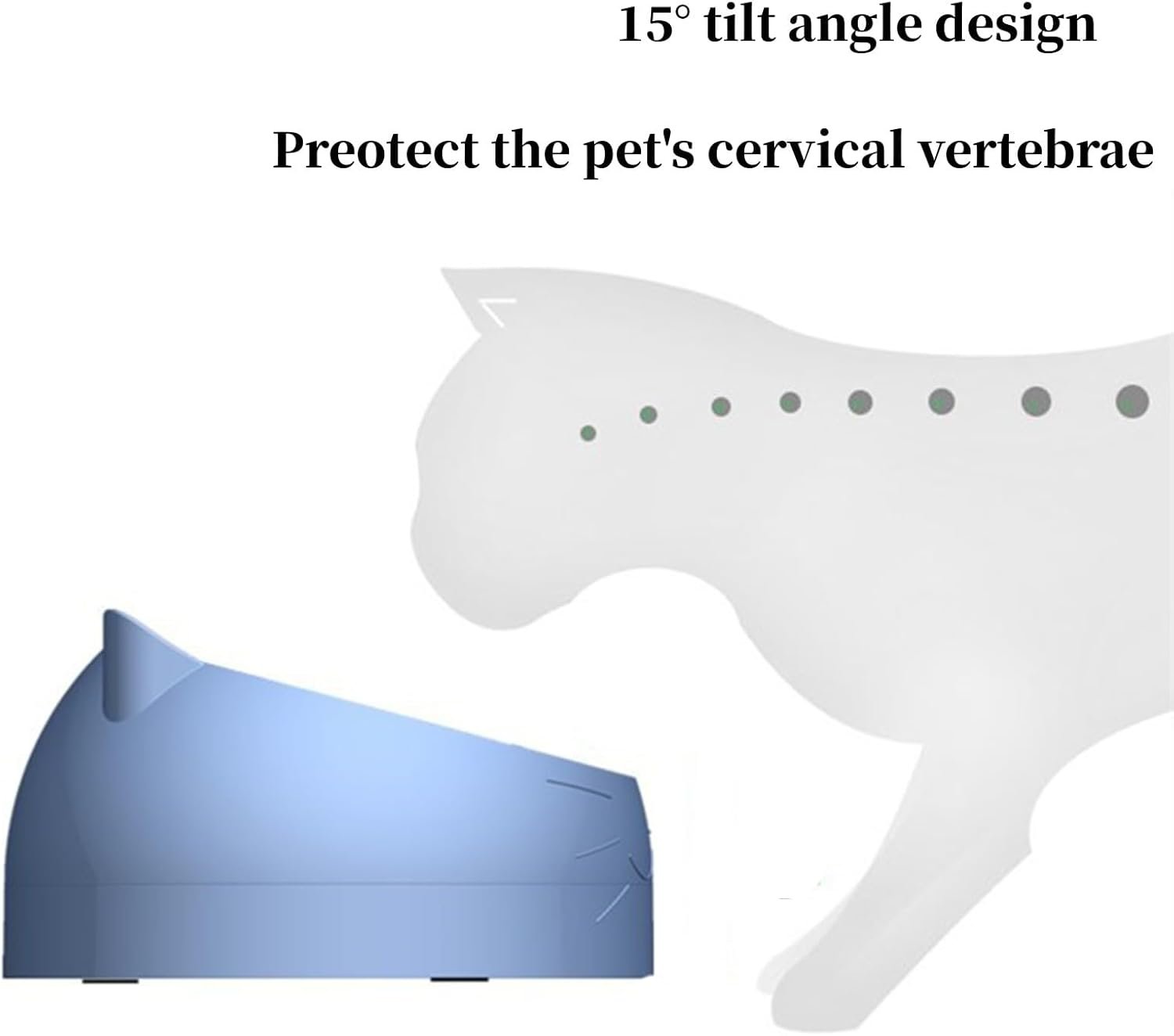 Clever Design: With 5 anti-slip rubber at the bottom, this bowl is not easy to move when cats eat and protects the floor from scratch. A 15° tilt angle of the cat water bowl to care for the pet’s cervical vertebrae and enable them to eat comfortably, preventing pets from choking.