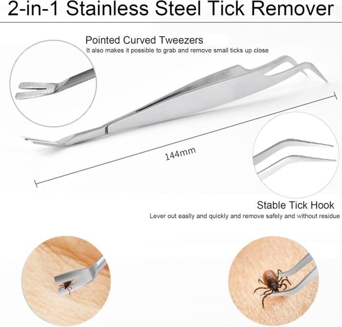 materials: The tick hook is made of plastic, and the tweezers are made of stainless steel, which is sturdy, , and not easy to break, ensuring long-term use.