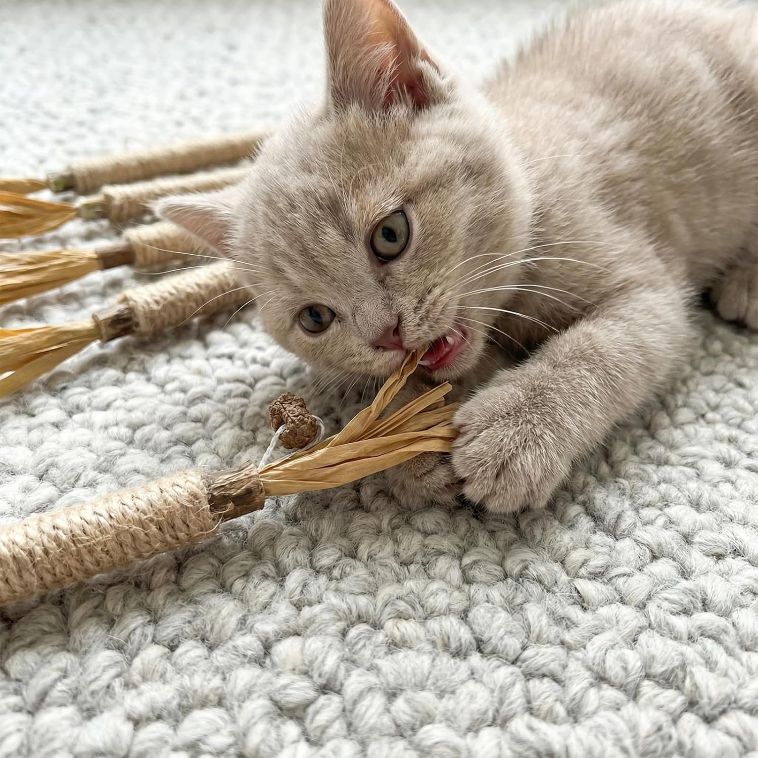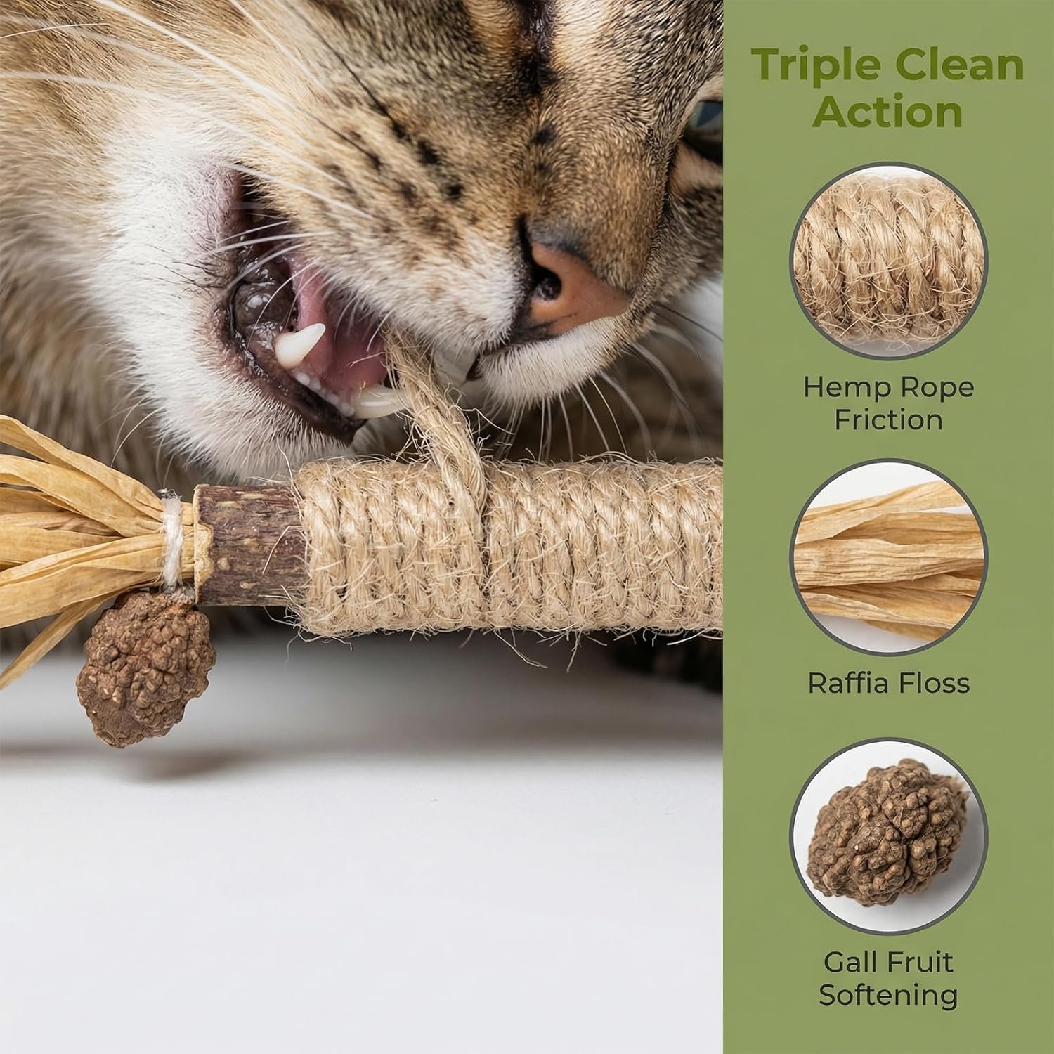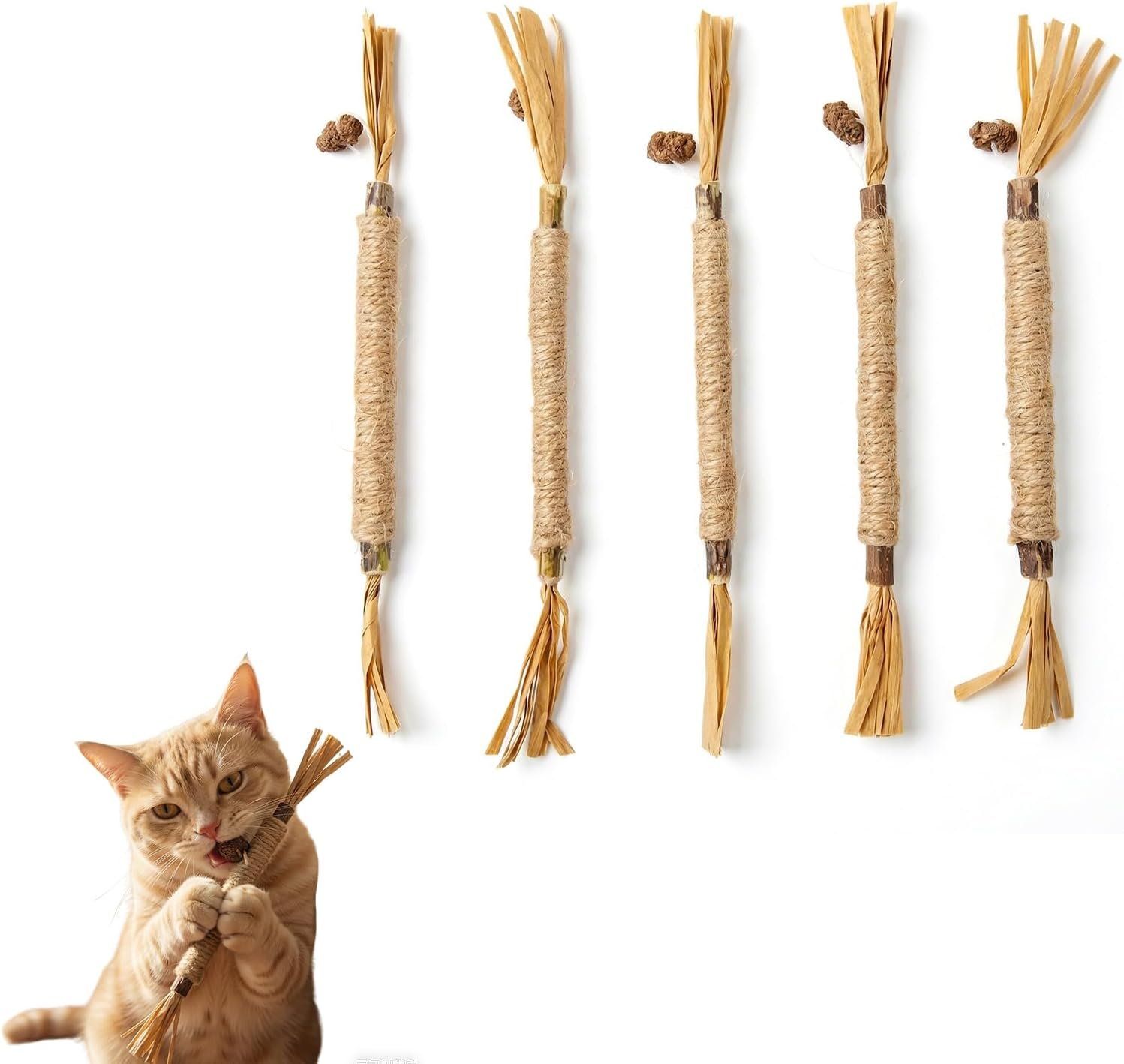 Your cat’s safety is our priority. Each chew stick is carefully made from natural Silvervine wood, bound with safe raffia or sisal rope, and features Gall Fruit (the fruit of the Silvervine plant). It’s a pure, additive-free choice for your pet’s chewing needs.