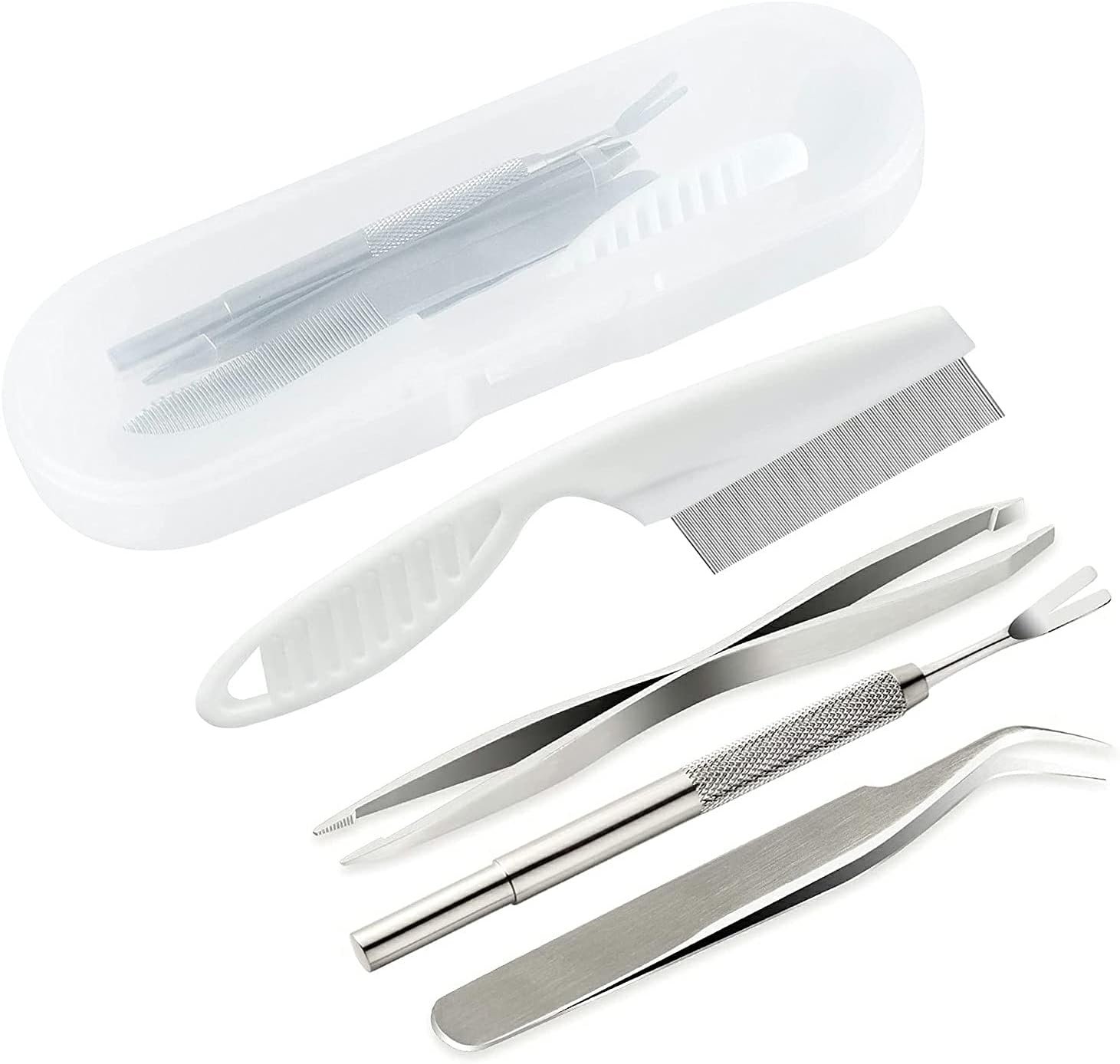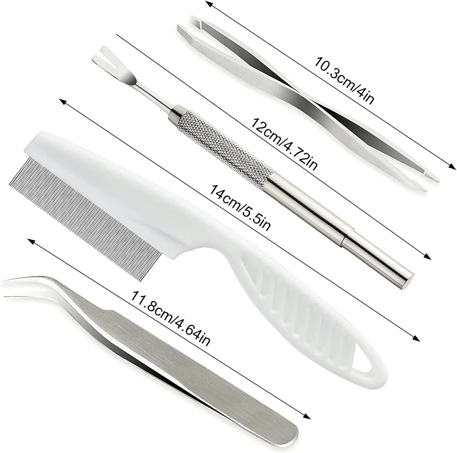 【Package Includes】1 double-ended tweezers, 1 single ended hook tool and 1 specially shaped tweezers and 1PCS Lice Comb and 1pcs pretty box.