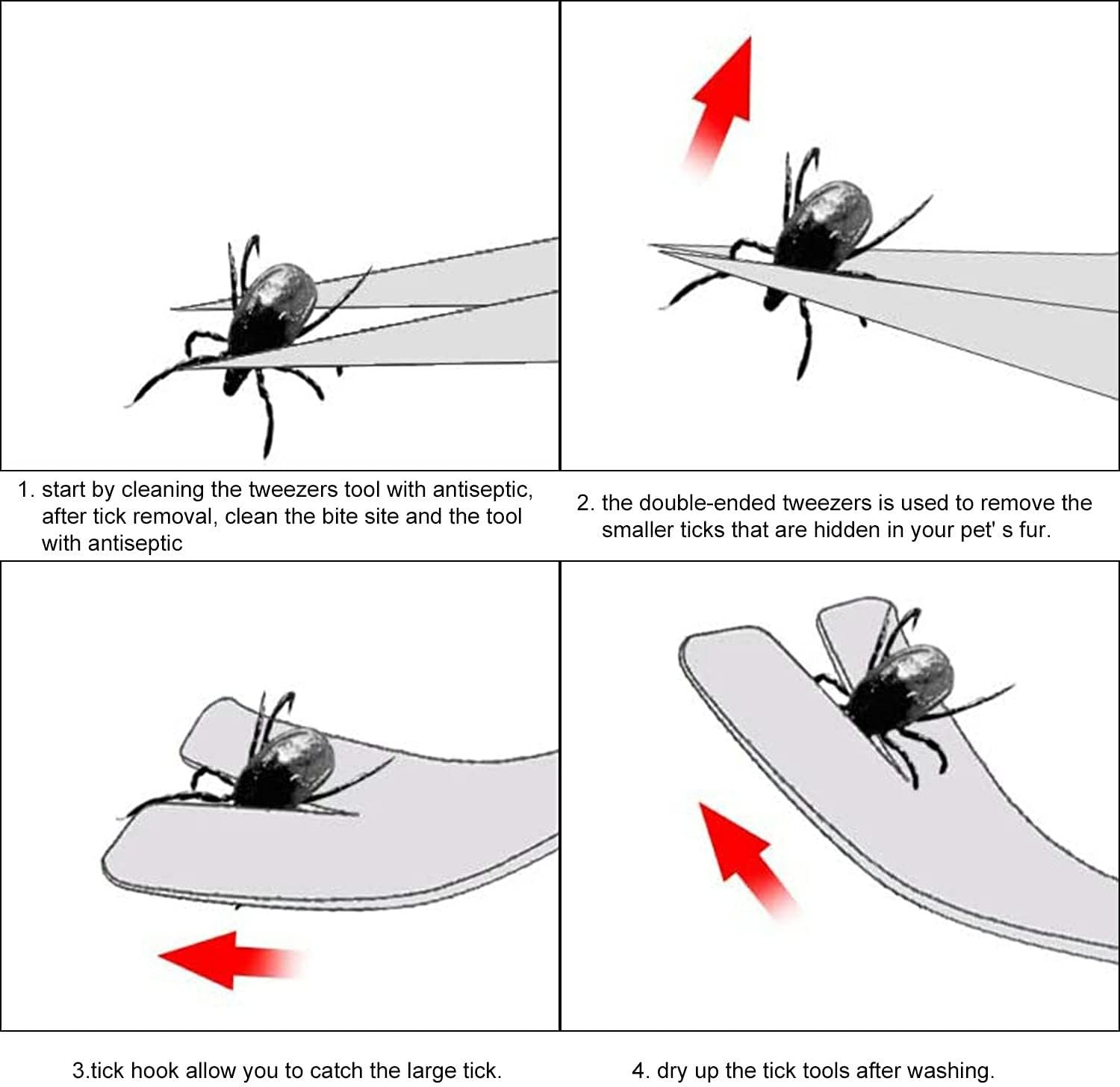 【Material】Made of premium 304 stainless steel that wont upset your pet, chemical-free and non-toxic. With this efficient Professional Tick Remover Kit, you can remove the dangerous bloodsucker in seconds without squeezing.