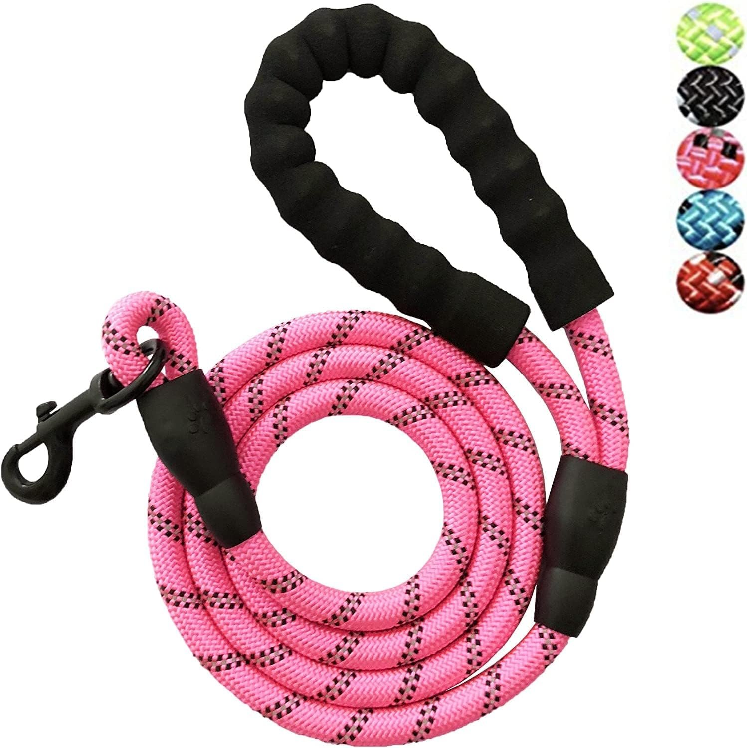 5′ Strong Dog Leash for Medium Large Dogs Heavy Duty Rope with Reflective Threads Padded Handle for Big Dogs Puppy, Pink