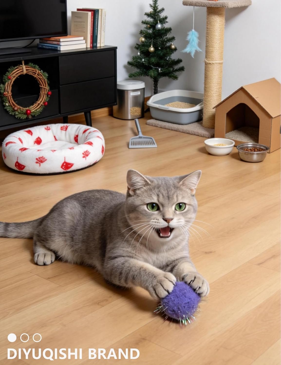 These versatile cat balls offer various play options. Enjoy interactive throwing games, let cats play solo, or string reflective balls for decorating cat houses or hanging on cat trees.
