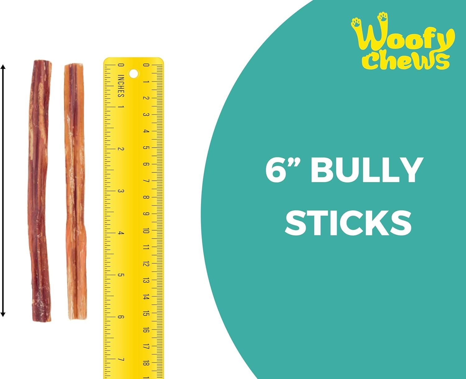 Woofy chews Jumbo/Thick Bully Sticks for Dogs 6-inch (Pack of 6) Single Ingredient Beef Pizzle with Low Natural Scent ( Heavy Chewers )