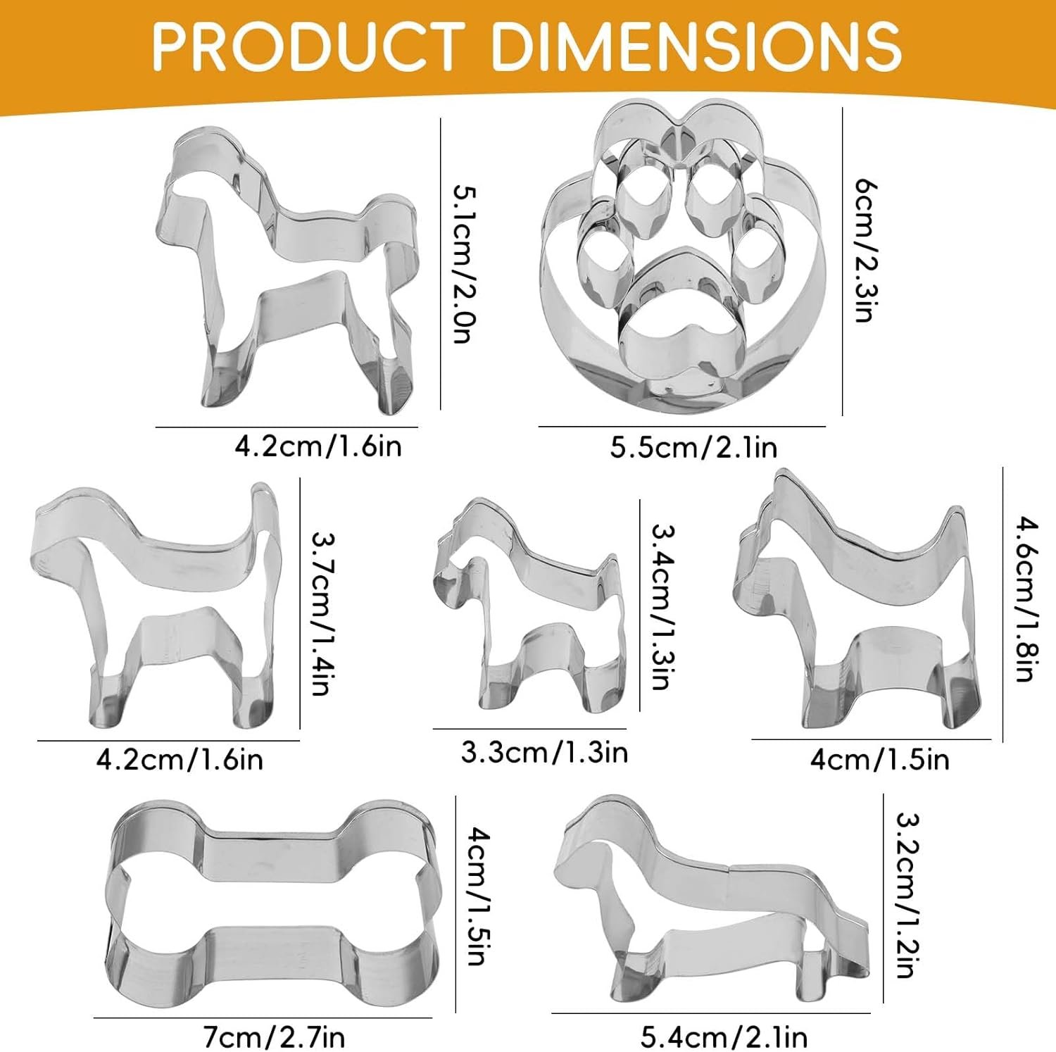 – 7 PCS dog-themed set, including bone and paw print shapes, ideal for cookie baking.