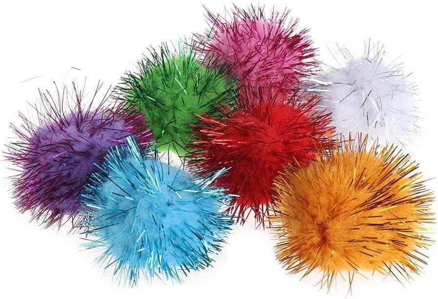 70pcs 3.5cm Glitzy Tinsel Sprayed Pompoms Balls Cat Toys Premium Quality Attractive Design