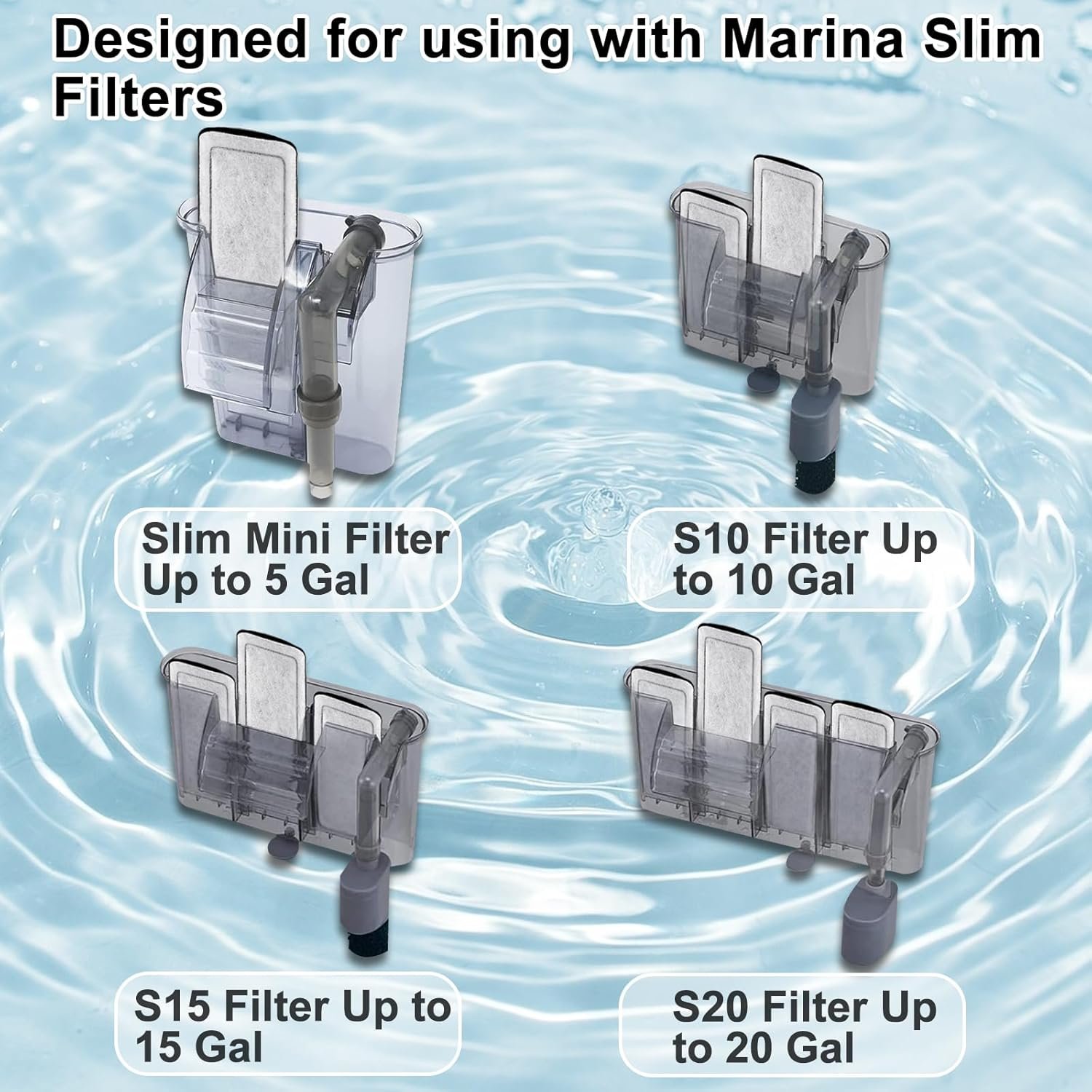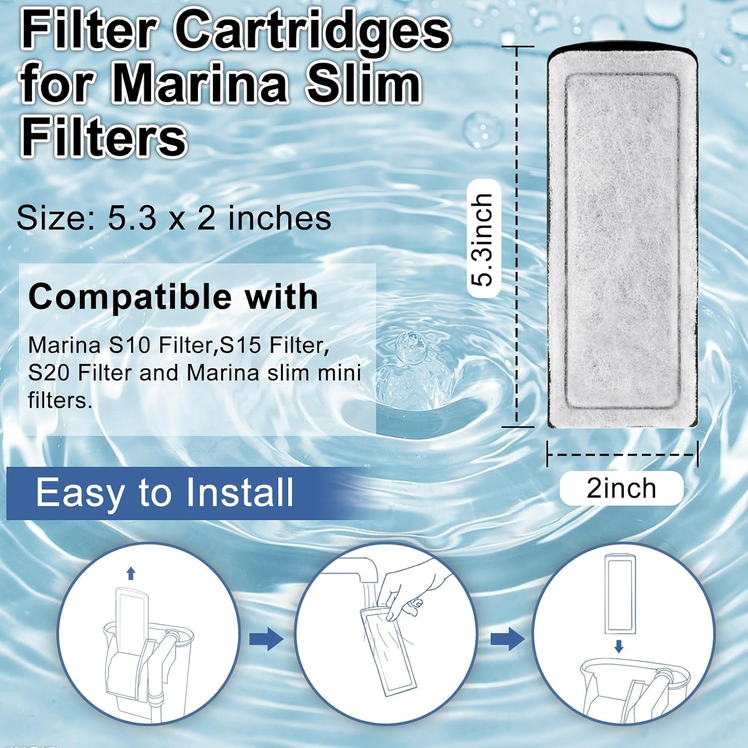 8 Pack Filter Cartridge for Marina Slim Filter S10/S15/S20, Replacement Fish Tank Filter Cartridges with Ceramic