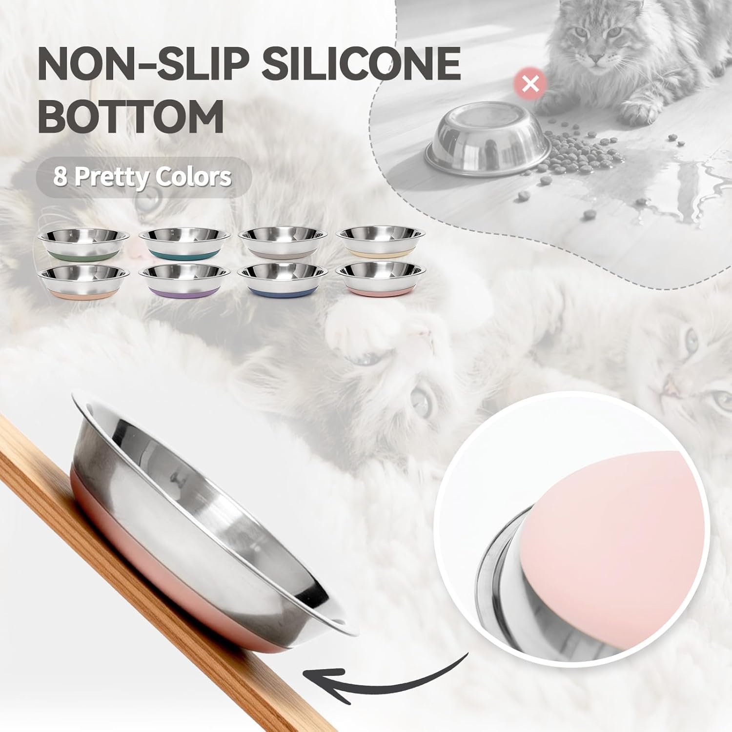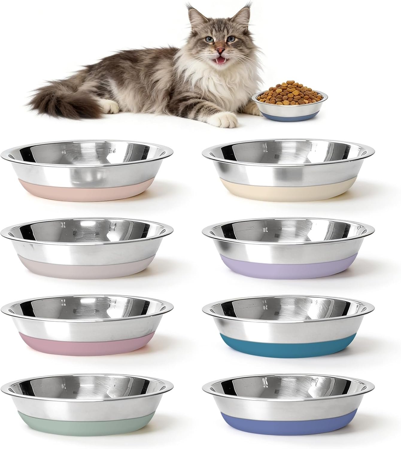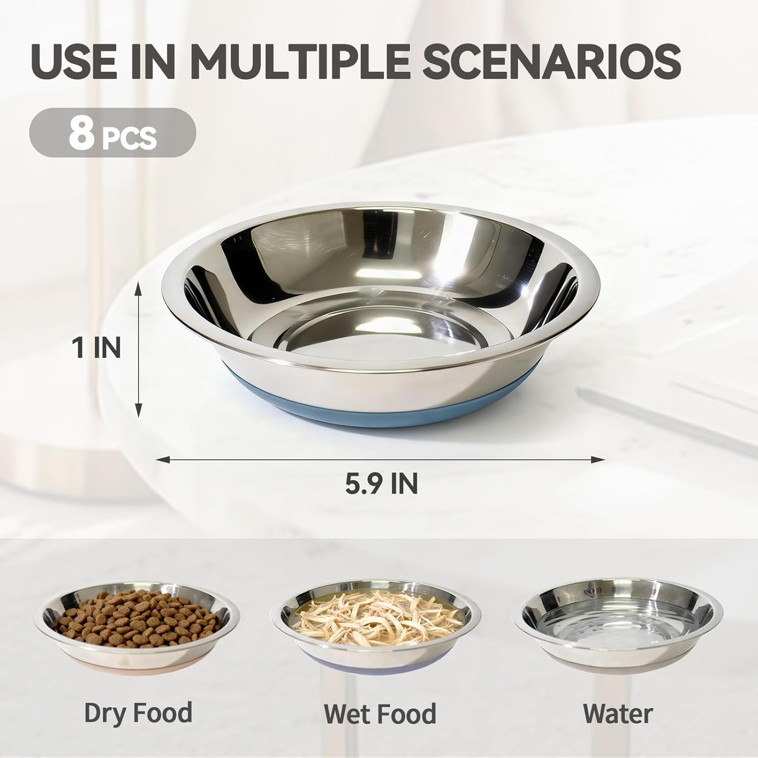Value Pack: Our product contains 8 pcs stainless steel cat dishes with colorful silicone base. Bright colors can stimulate your pet’s appetite, enough quantity to meet the needs of multiple pets use or replacing needs