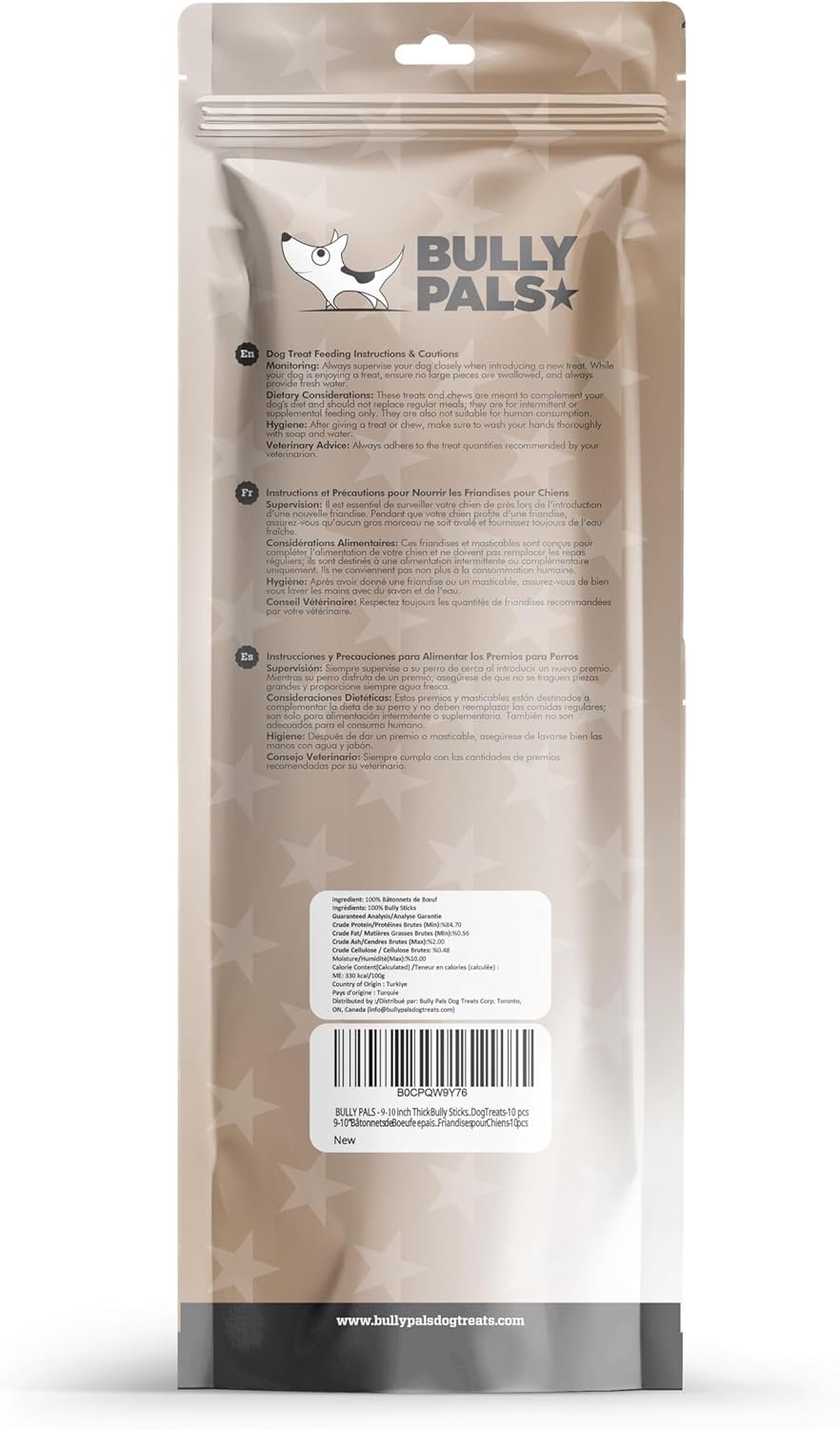9-10 inch Thick Bully Sticks – 10 Pack – Long Lasting, All Natural, Single Ingredient, Dehydrated Dog Treats and Dental Chews