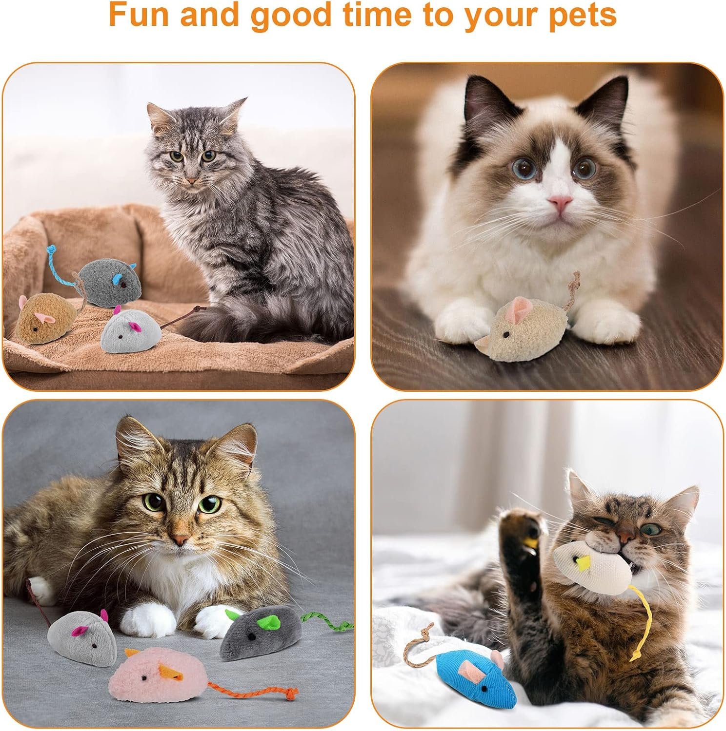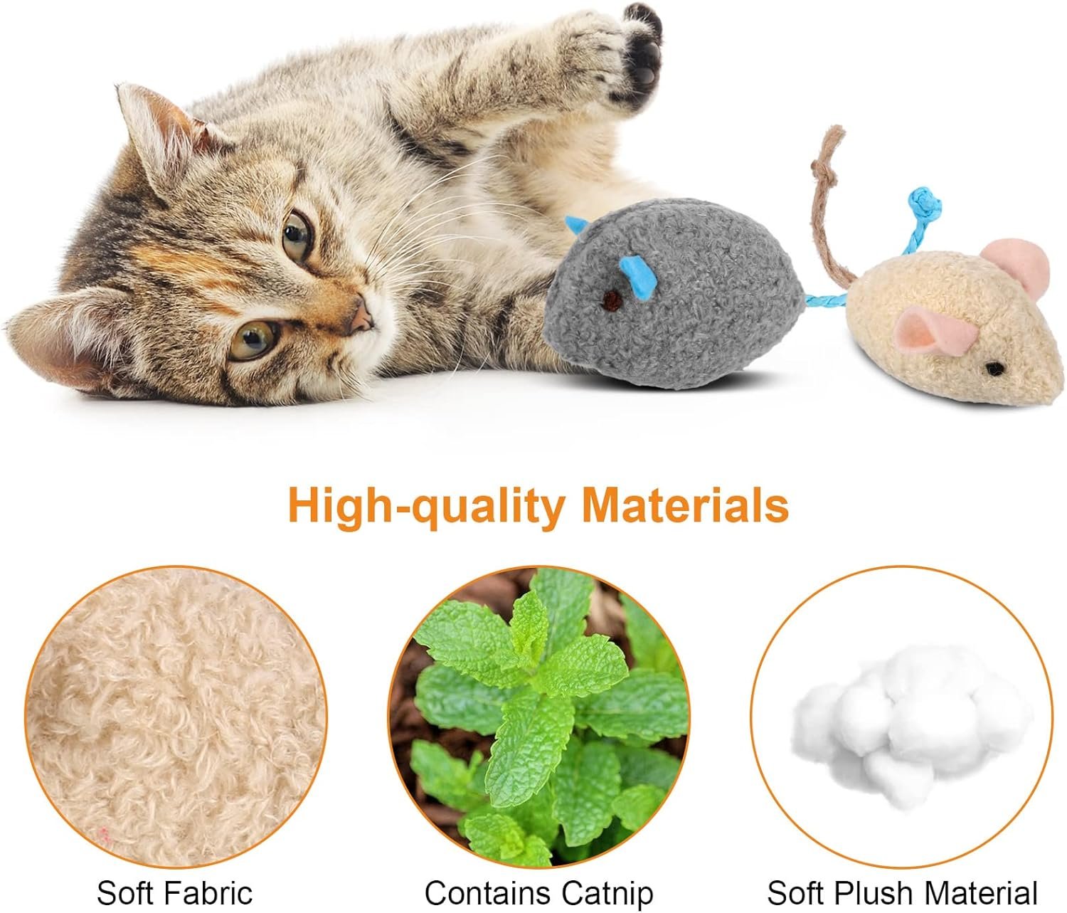 Natural Catnip: 9 piece cat mouse toys. The catnip cat toys is full of natural catnip that cats like. The breathable fabric easily exudes the smell of catnip, so that your kitten can have a better and longer lasting experience. Catnip is safe for people and pets, healthy and practical. Very suitable for families with cats.