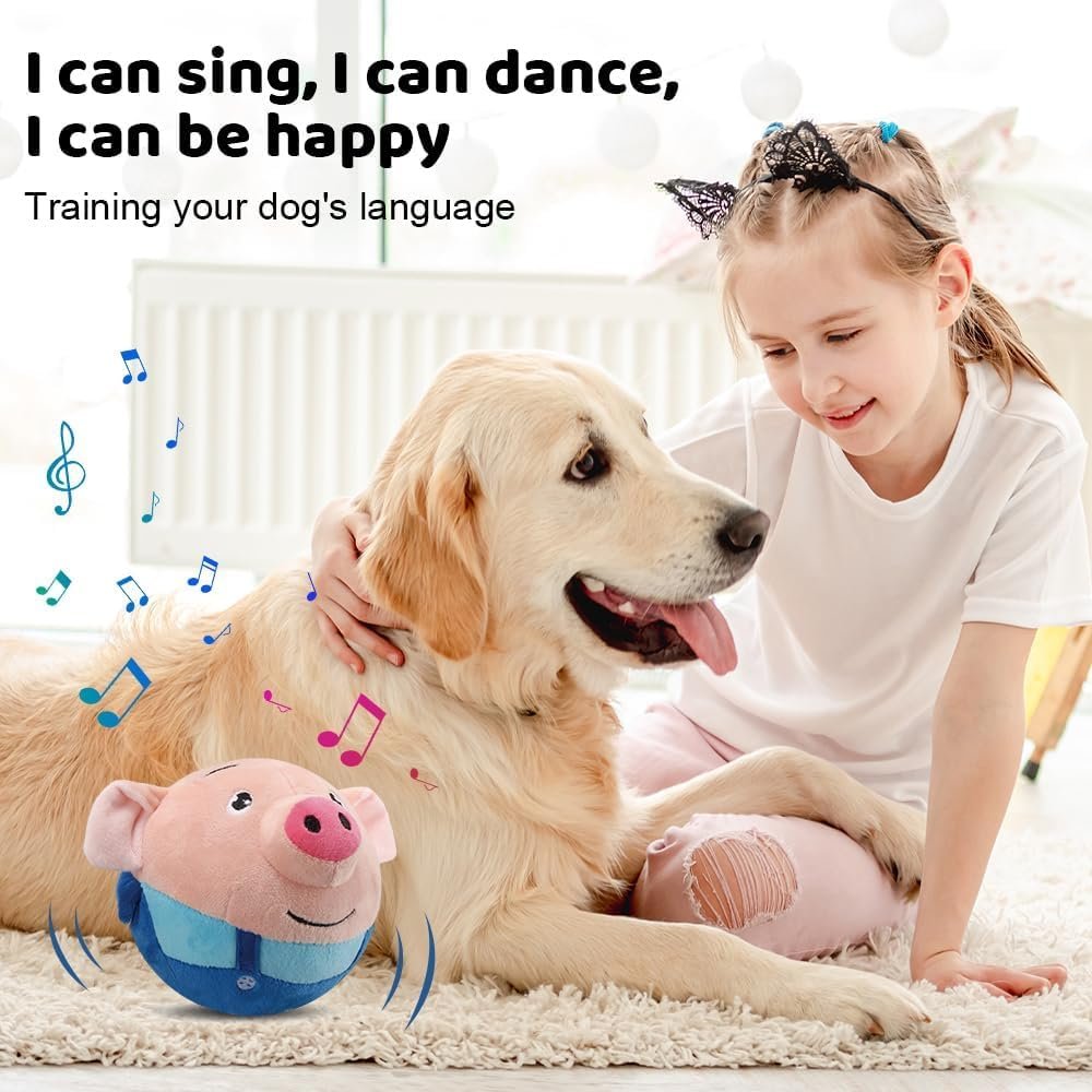 Active Moving Pet Plush Toy, Upgrade Interactive Dog Toys Talking Moving Dog Ball Toy Washable Cartoon Pig Plush