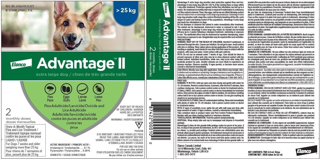 Advantage II Flea Treatment for Extra Large Dogs weighing over 25 kg (over 55 lbs.) – 2 doses