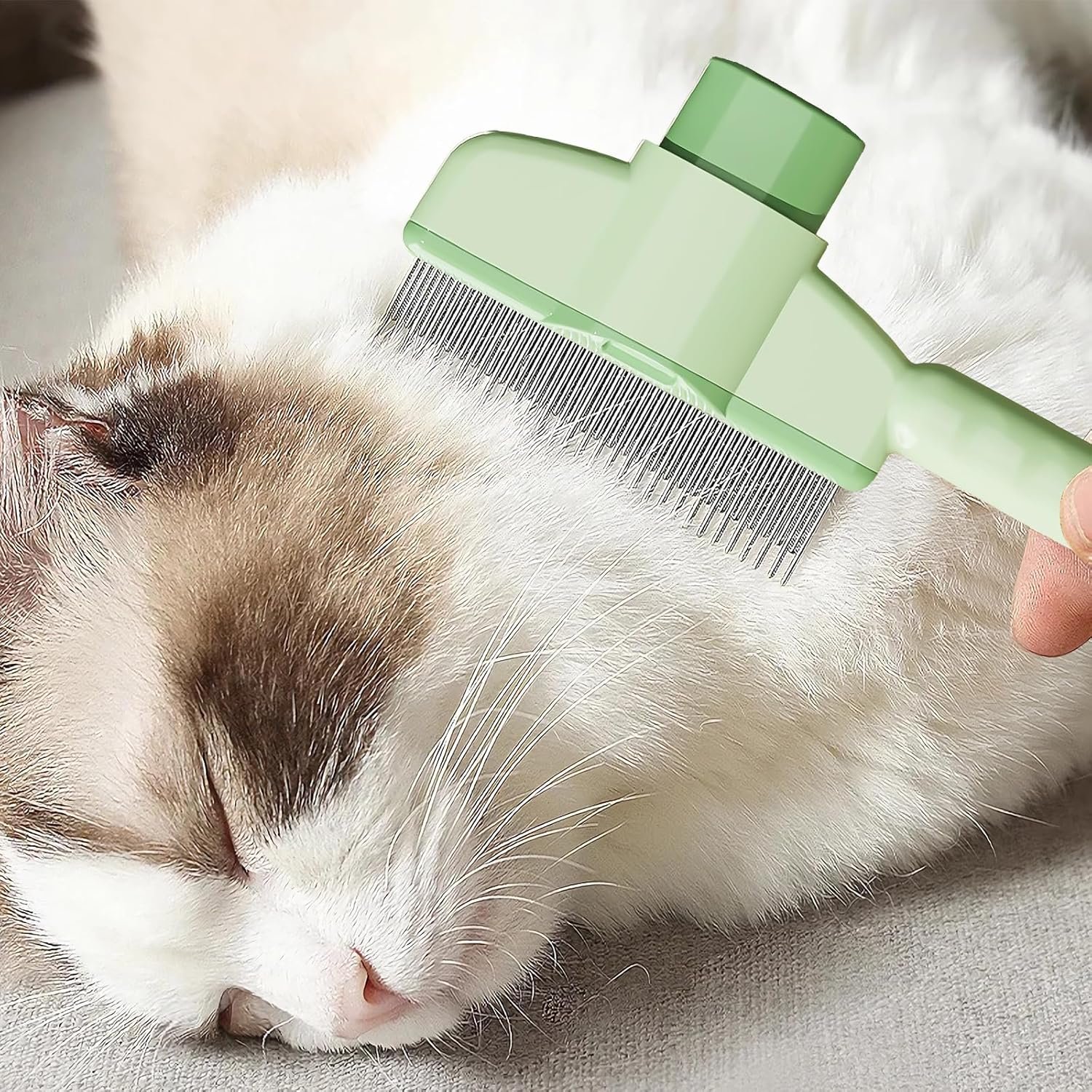 Aerbee Cat Brush with Release Button, Flea Comb for Indoor Cats Shedding, Cat Brush for Long or Short Haired Cats, Cat Grooming Brush Cat Comb for Kitten Rabbit Massage Removes Loose Fur, Green